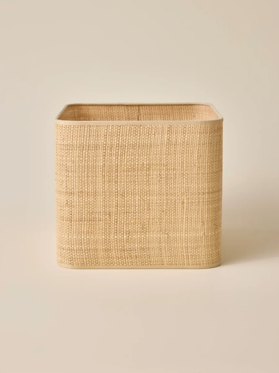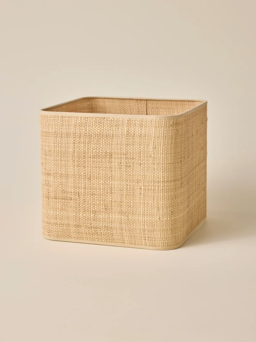 Modèle en fibres végétales. Forme carrée aux angles légèrement arrondis et tissu végétal pour une allure rétro chic naturelle. Une exclusivité Cyrillus Maison fabriquée de manière artisanale par un atelier français spécialiste de l’abat-jour