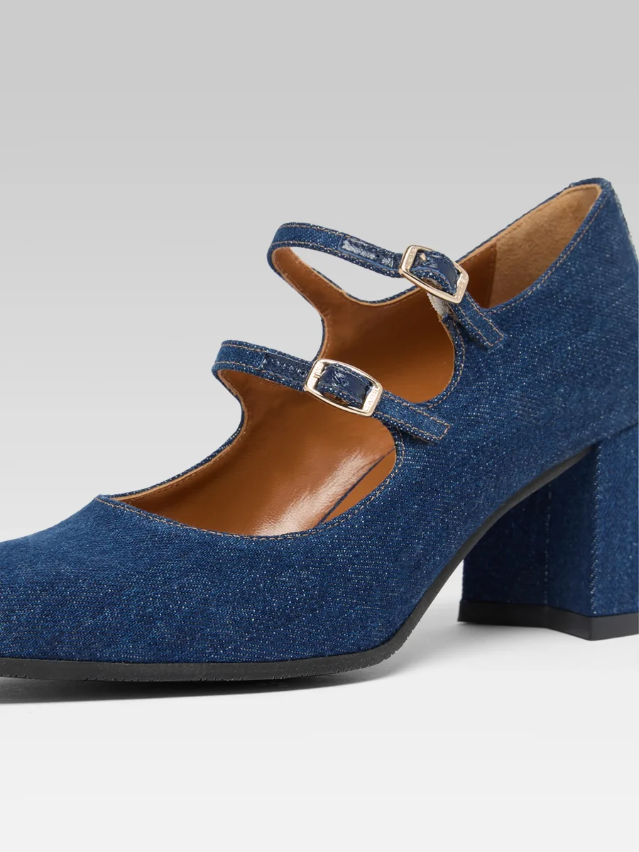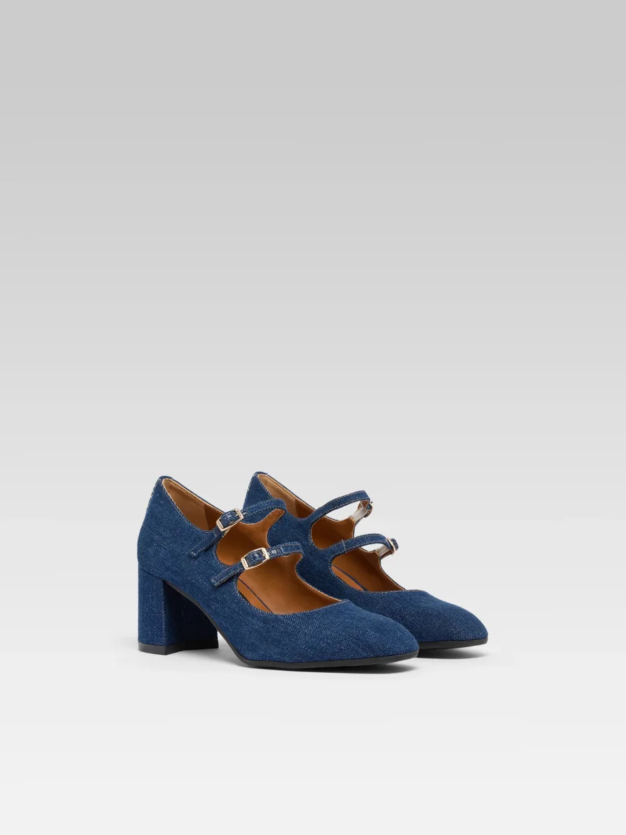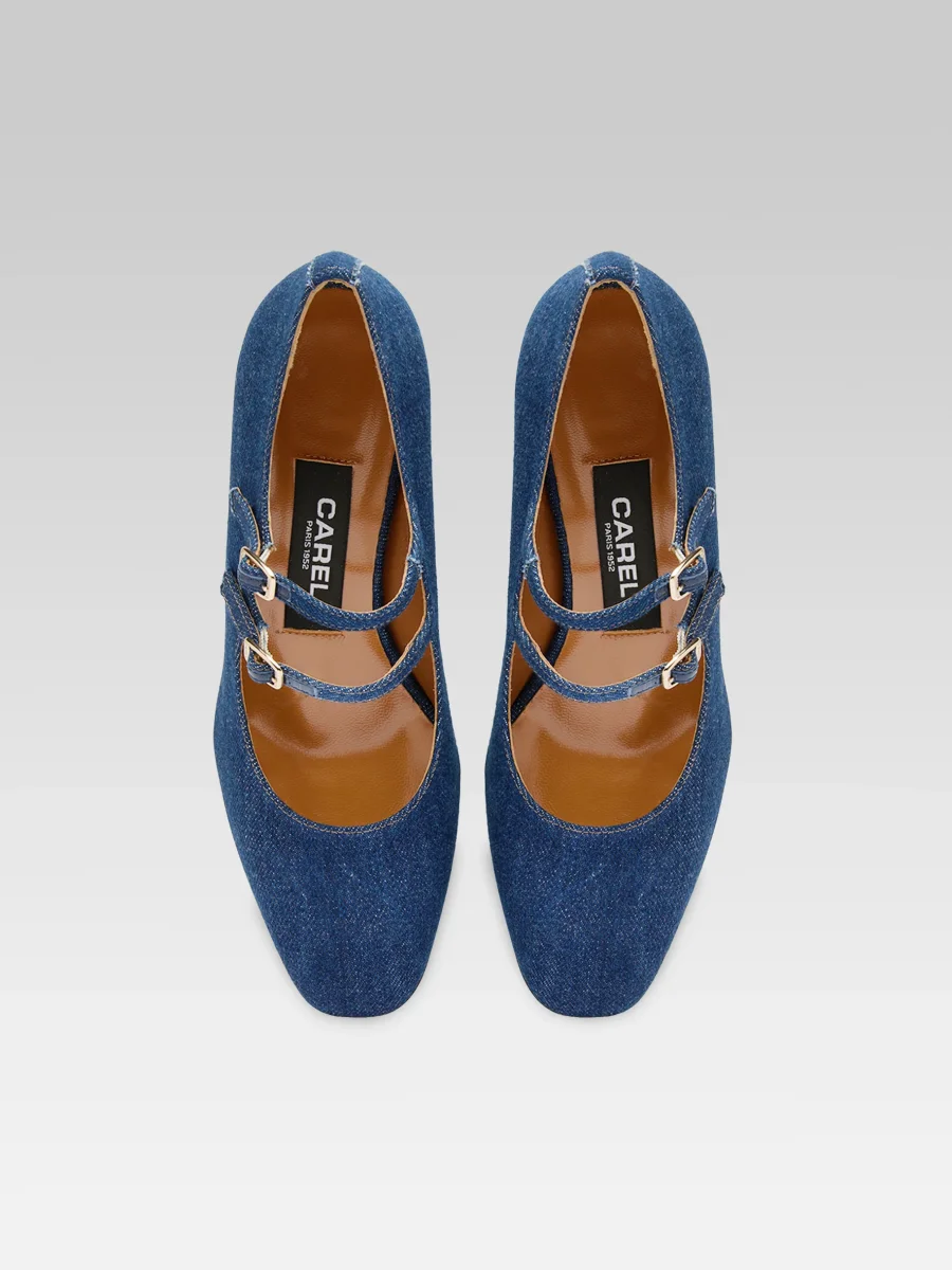 Alice – Escarpins babies tissu jean brut