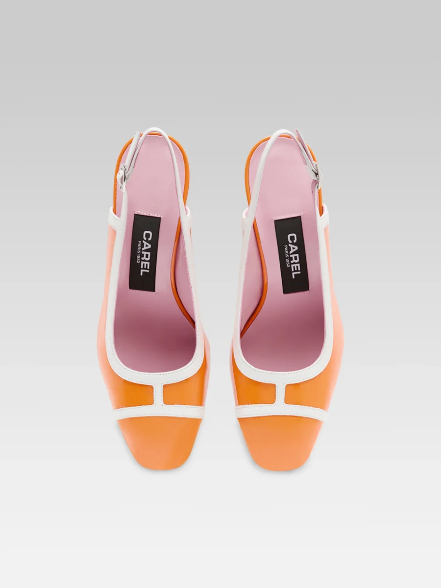 Alizee – Escarpins slingback cuir verni orange et blanc