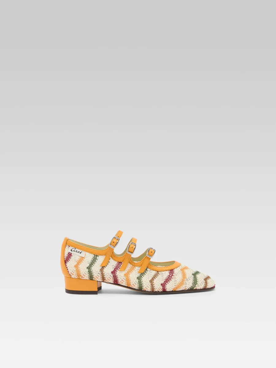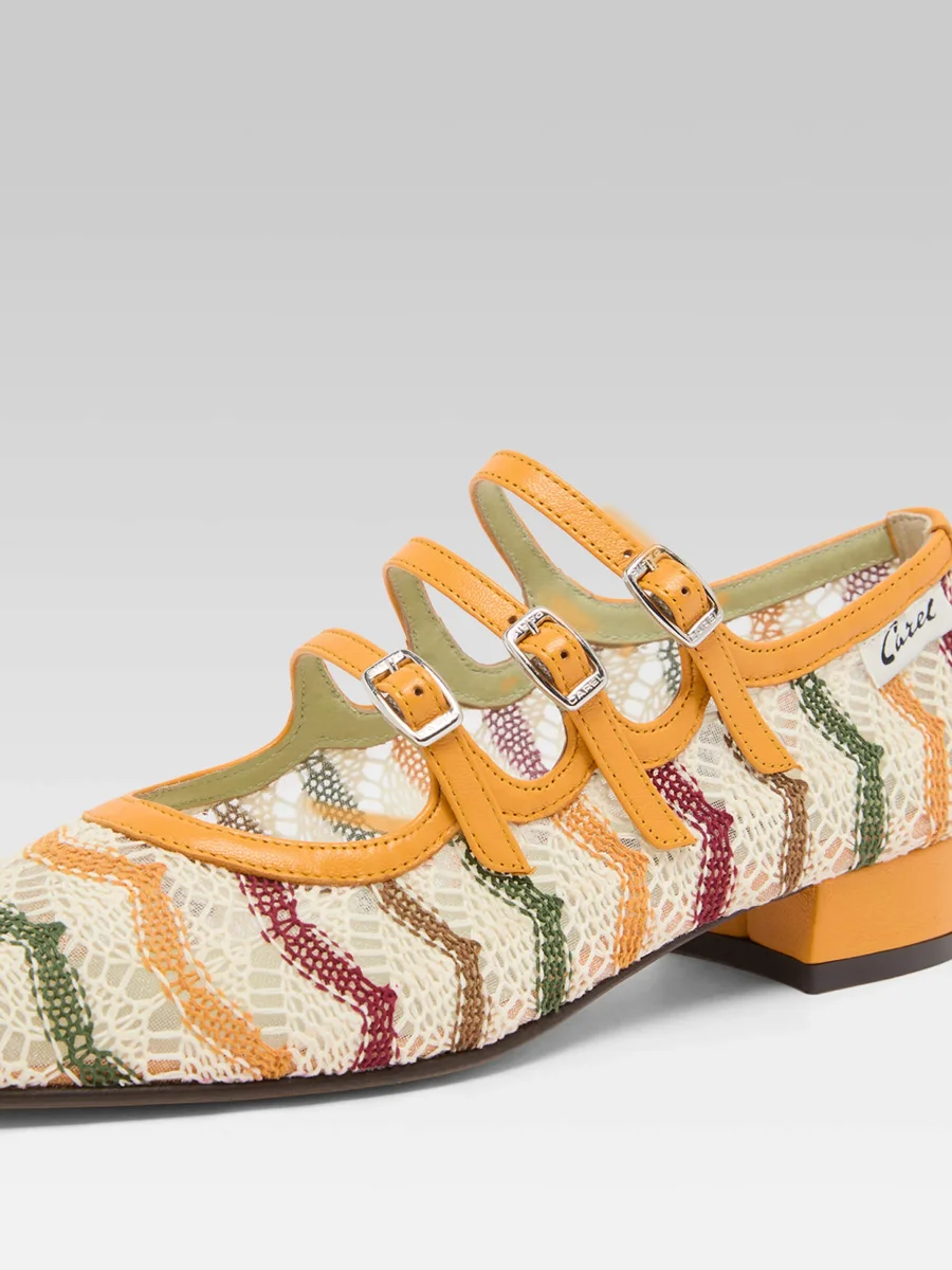 Ariana – Ballerines babies cuir verni mangue et crochet ivoire