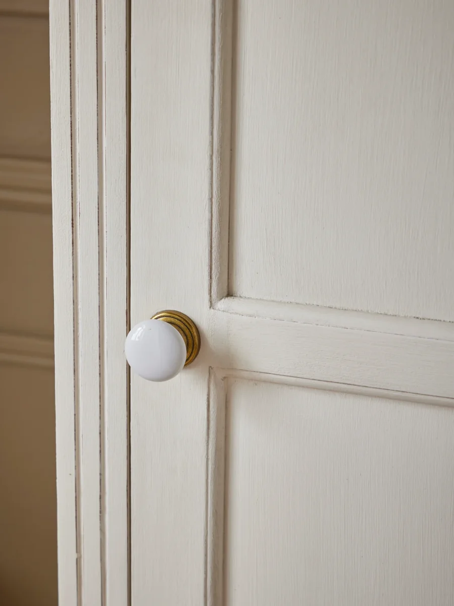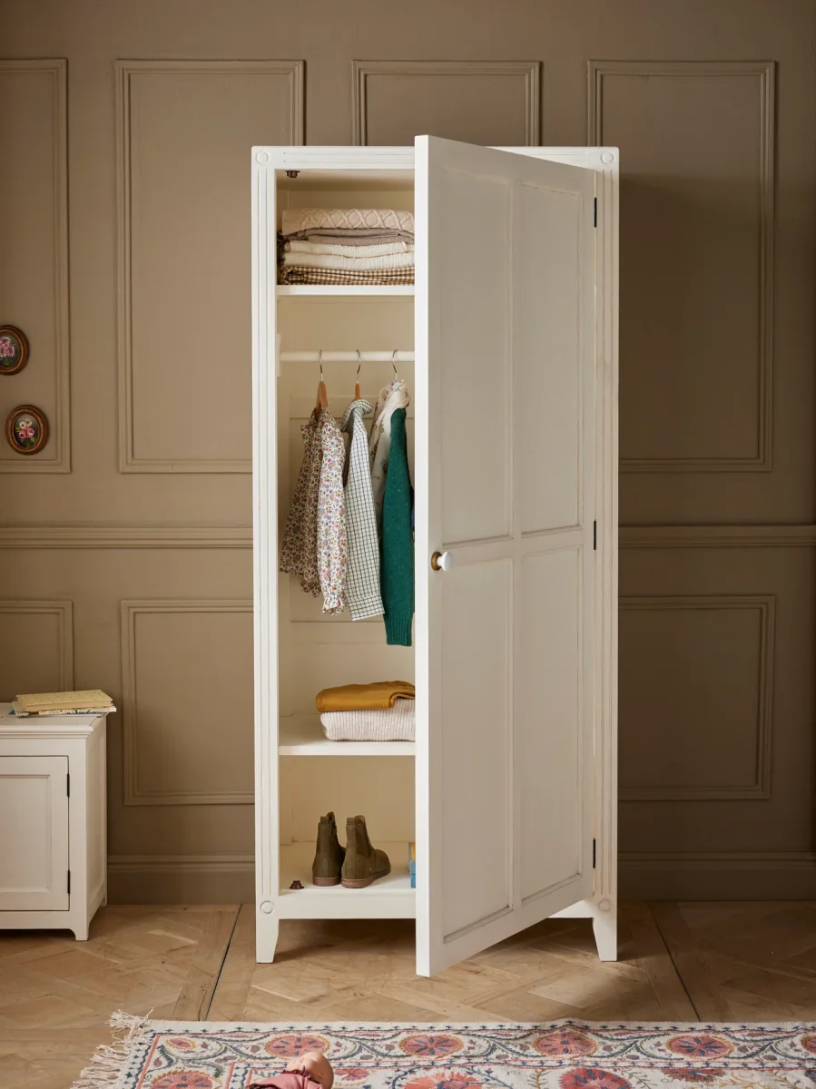 L’armoire Camille est l’armoire Parisienne que l’on a toujours rêvé de chiner. Élégante avec ses moulures, sa poignée en porcelaine ou sa serrure en laiton, selon le coloris. Sa finition effet « coups de pinceau » est réalisée à la main. Cette armoire en bois peint est fabriquée artisanalement par des ateliers d’ébénisterie. Elle est composée d’une penderie et de 3 planches étagères.