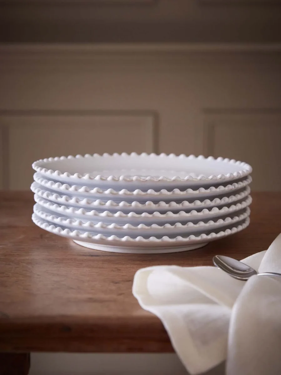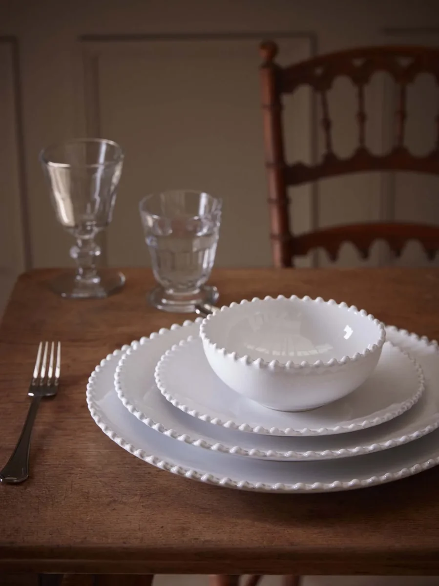 La gamme Perle est produite par la marque de céramique de table Costa Nova. Originaire du charmant village éponyme situé sur la côte Portugaise, Costa Nova est reconnue pour la qualité et la durabilité de ses produits. La gamme Perle a été élaborée dans un style élégant et raffiné ; elle est reconnaissable par sa finition dentelée. Une manière raffinée de présenter des pâtisseries.