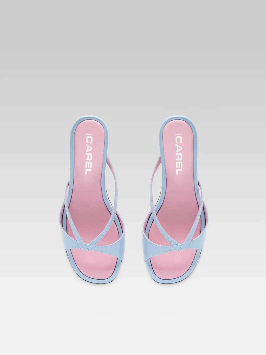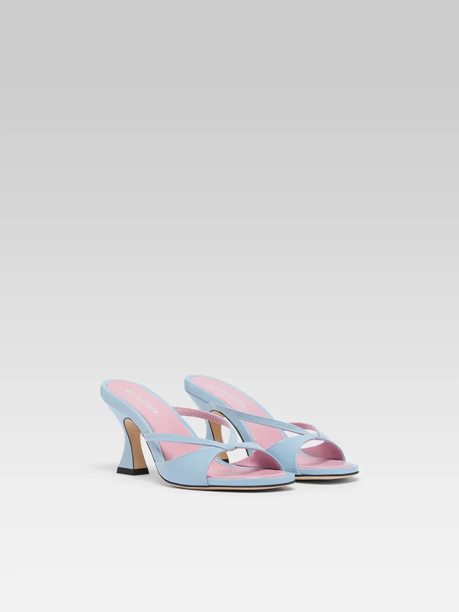 Athéna – Mules à brides cuir bleu ciel