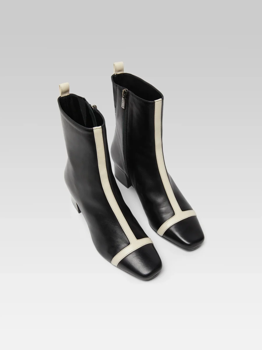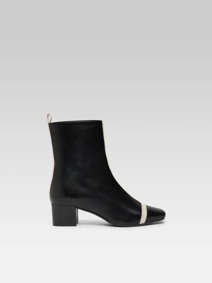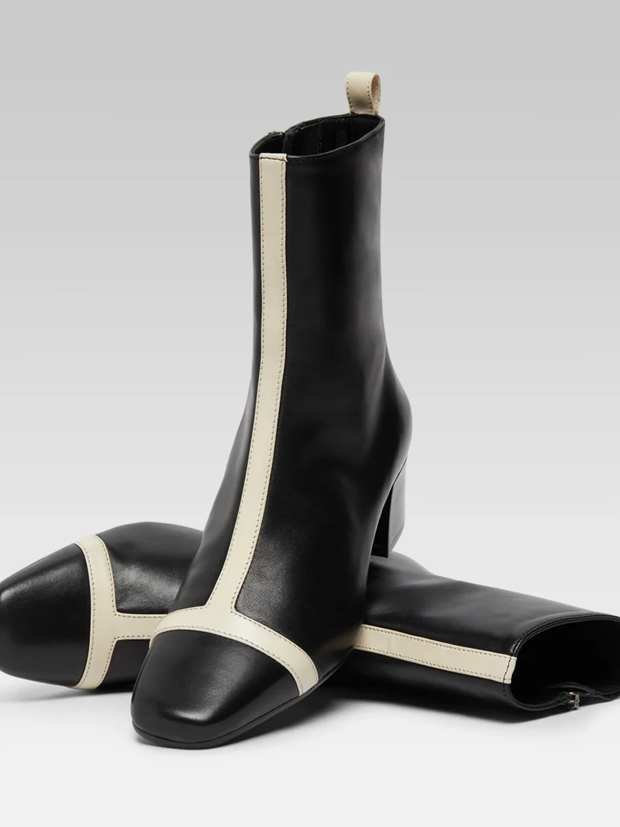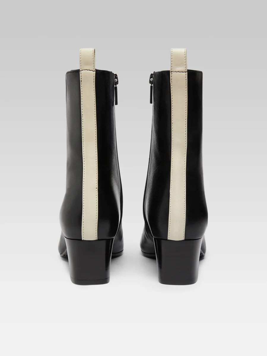 Audrey – Bottines cuir noir et ivoire