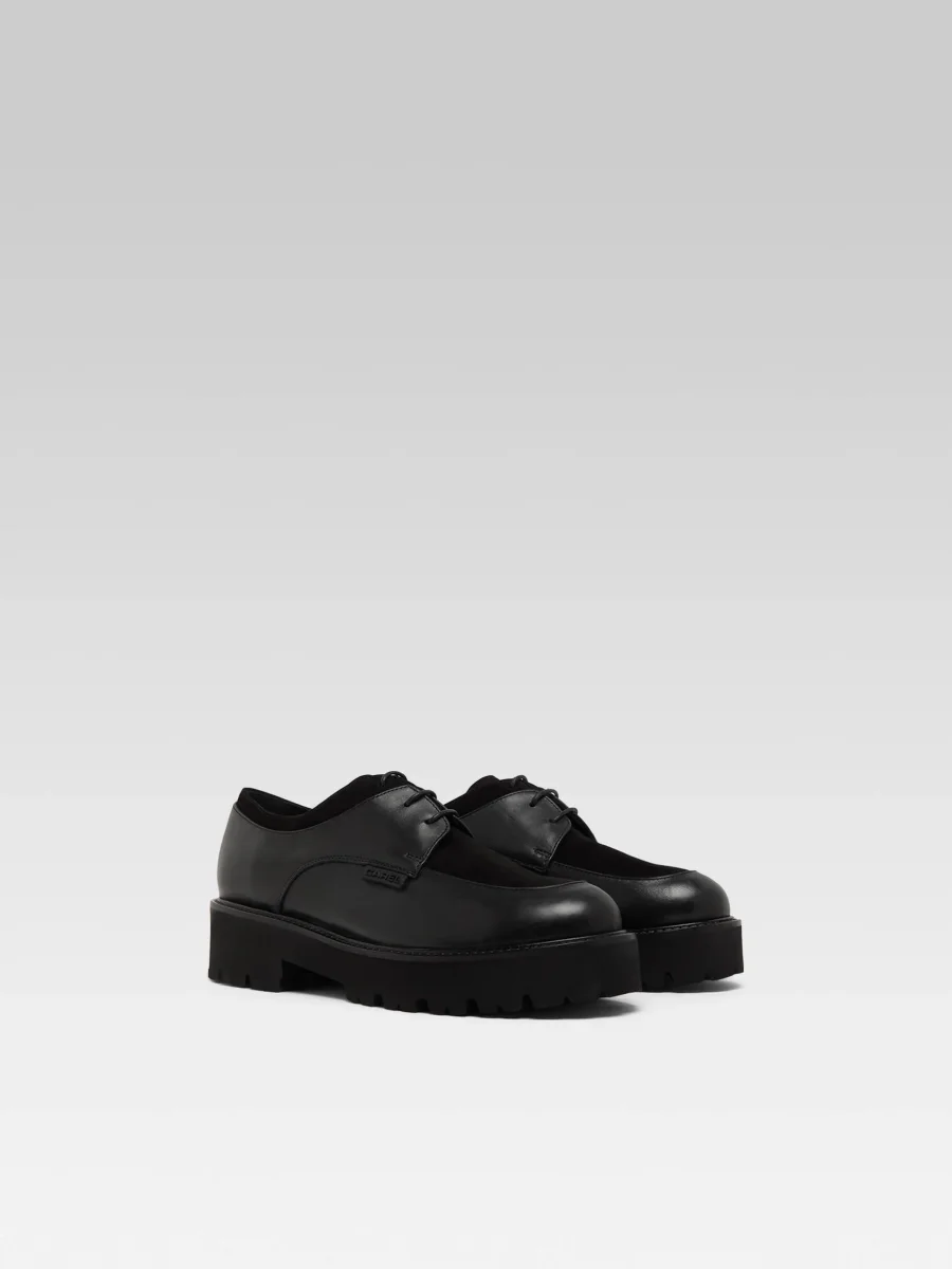 La derbie Azur est une réinterprétation moderne d’un classique intemporel, twistée sur une semelle de gomme épaisse et confortable. Avec ses lignes épurées, il allie raffinement parisien et simplicité du quotidien : un essentiel de la saison.