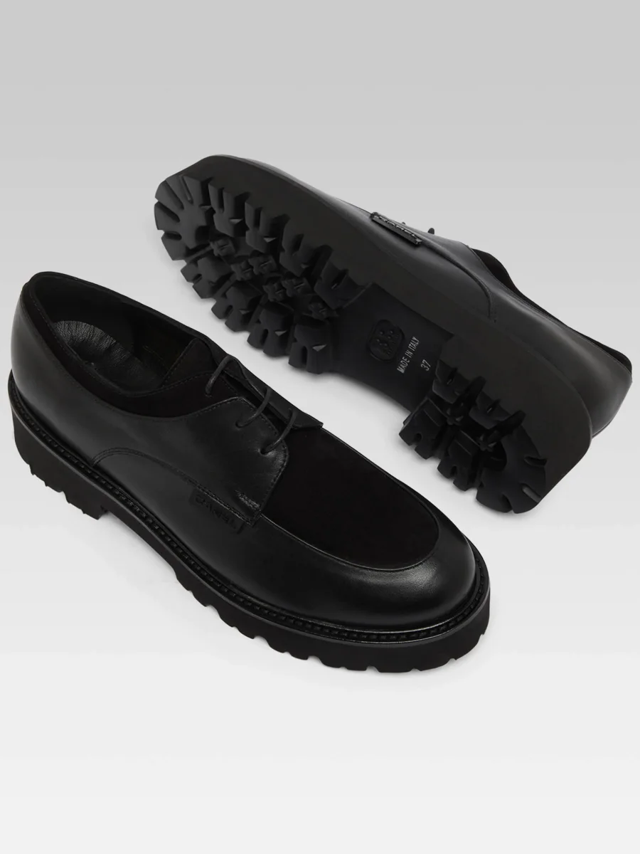La derbie Azur est une réinterprétation moderne d’un classique intemporel, twistée sur une semelle de gomme épaisse et confortable.
