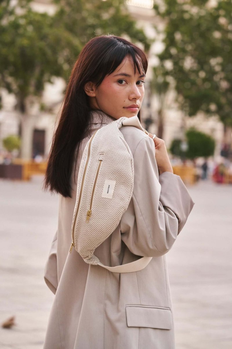 Sac banane coton beige et écru Elio :• Le coloris intemporel incontournable. • Sangle réglable pour toutes les morphologies et poche frontale zippée.• Fabrication locale en circuit court • Pensée pour durer