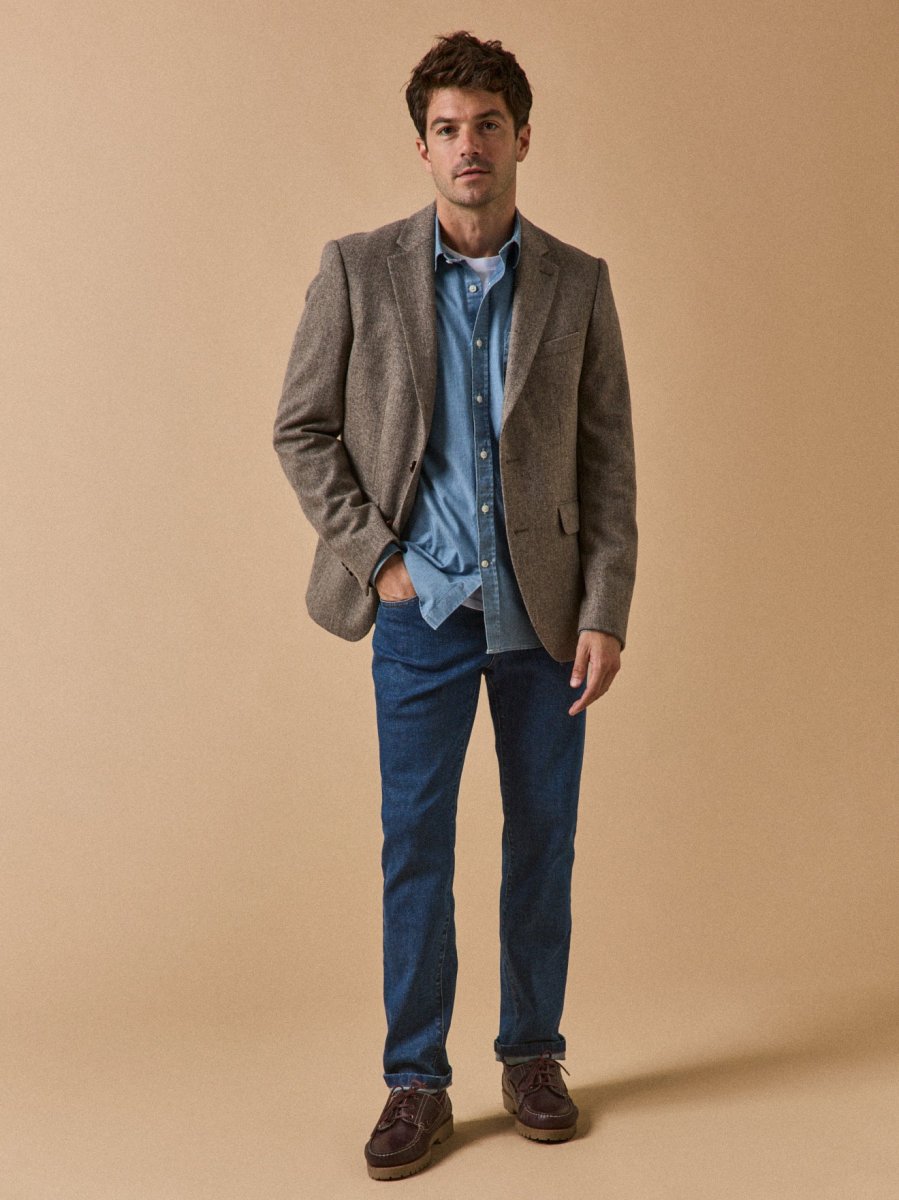 Confectionnée au Maroc dans un remarquable tissu chevrons de qualité italienne, cette veste blazer à la coupe impeccable est parfaite pour donner une allure élégante aux looks du quotidien. Un modèle conçu pour des hommes modernes qui apprécient autant une allure décontractée que formelle.