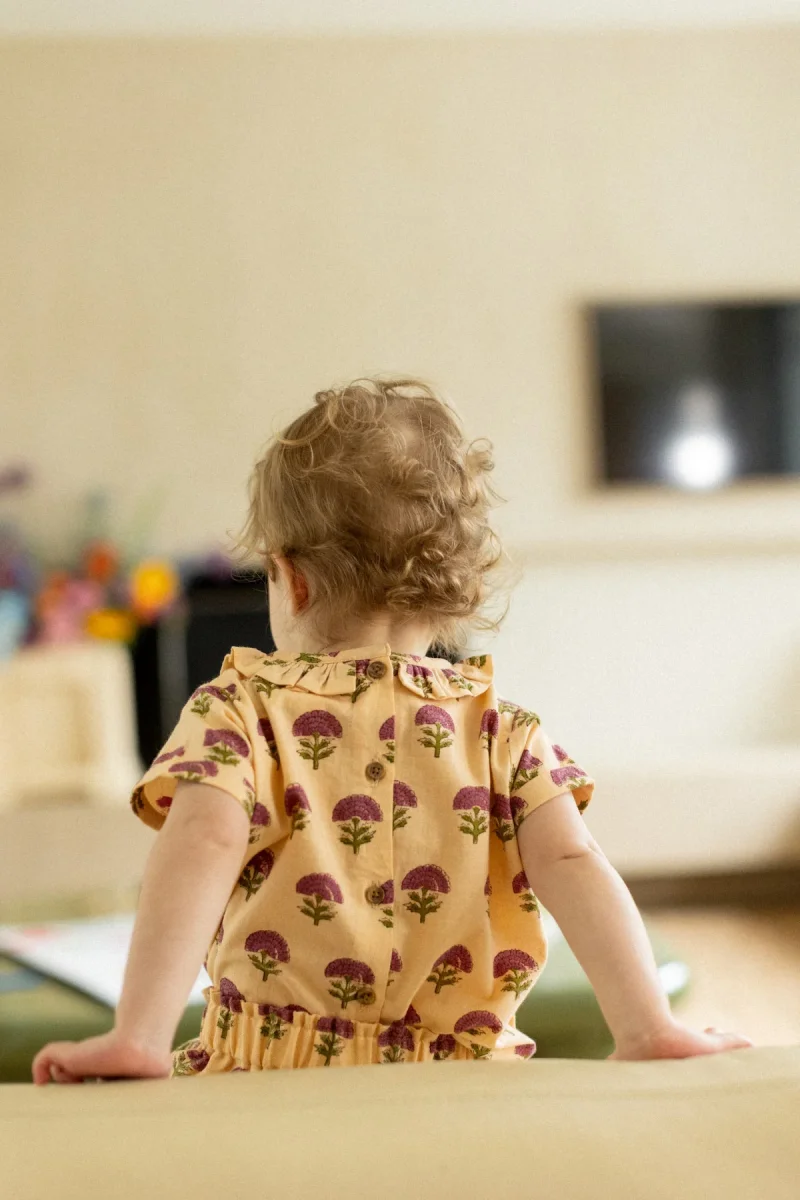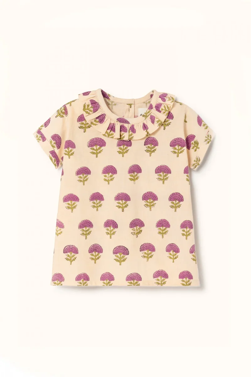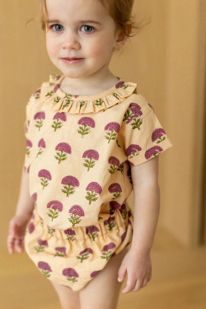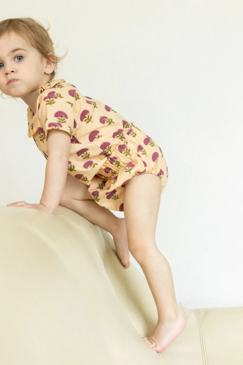 Pièce indispensable dans la garde-robe de vos minis, notre blouse Neha au col volanté et à l’imprimé « Florets » Macadamia apportera de la douceur à chaque tenue de vos babies. Elle se marie parfaitement avec notre bloomer Tallum pour un total look fleuri !