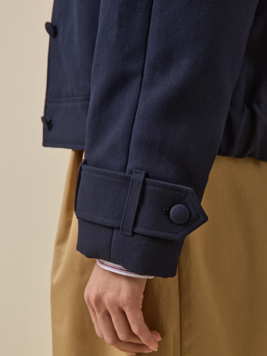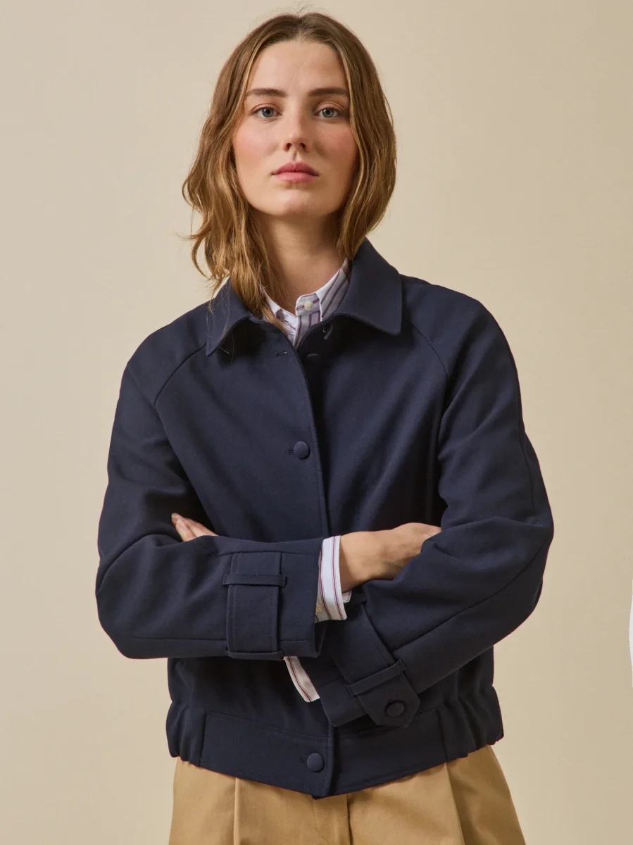 Hybride par excellence, elle marie la modernité du volume raglan à la souplesse de son tissu double face. Entre veste et blouson, cette pièce signature est l’équilibre parfait entre décontraction et sophistication. Le luxe se niche dans les détails : l’intérieur carreaux moderne, méticuleusement gansé pour une finition d’exception. Tissu et confection Europe.