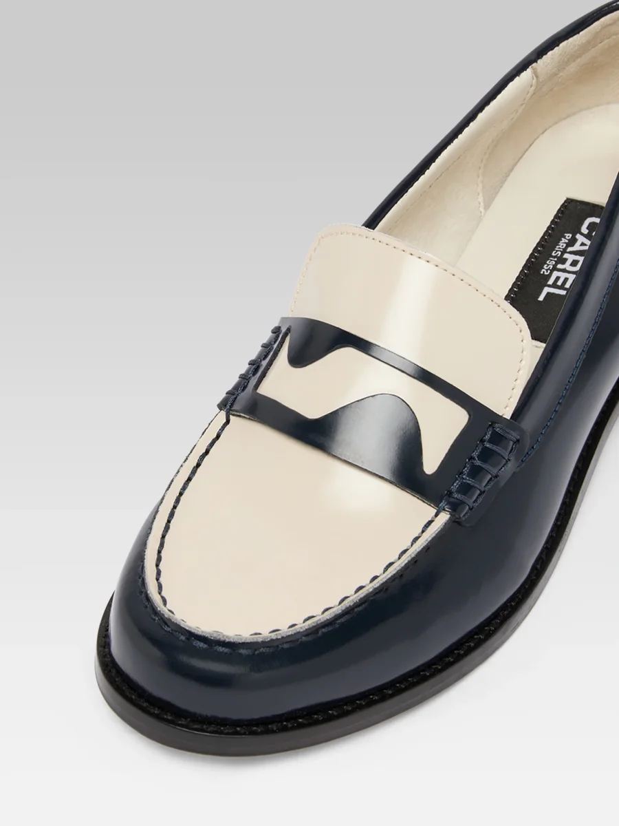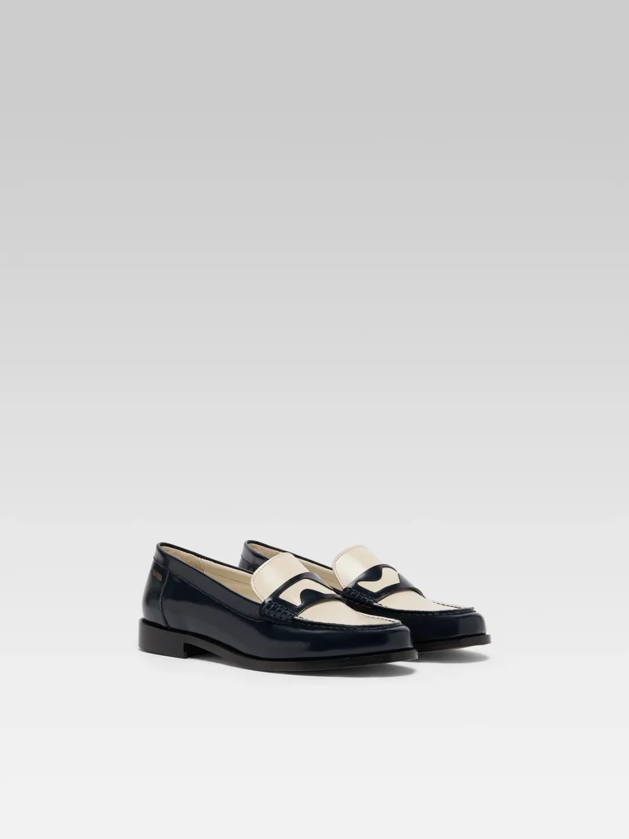 Bossa – Mocassins cuir glacé bleu marine et ivoire