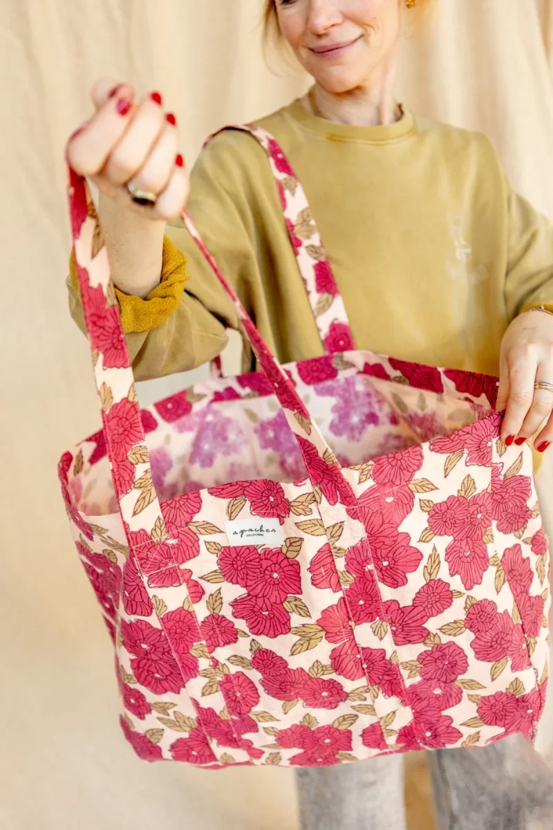 Avec son imprimé « Bloom » Macadamia pétillant et son format spacieux, notre nouveau cabas Sambi en coton épais est idéal pour toutes vos activités quotidiennes car il se transporte et se plie facilement même dans une valise. Que ce soit pour des courses, le sport, le travail ou une escapade en week-end, ce cabas offre suffisamment d’espace pour vos essentiels, tout en ajoutant du style à vos tenues !