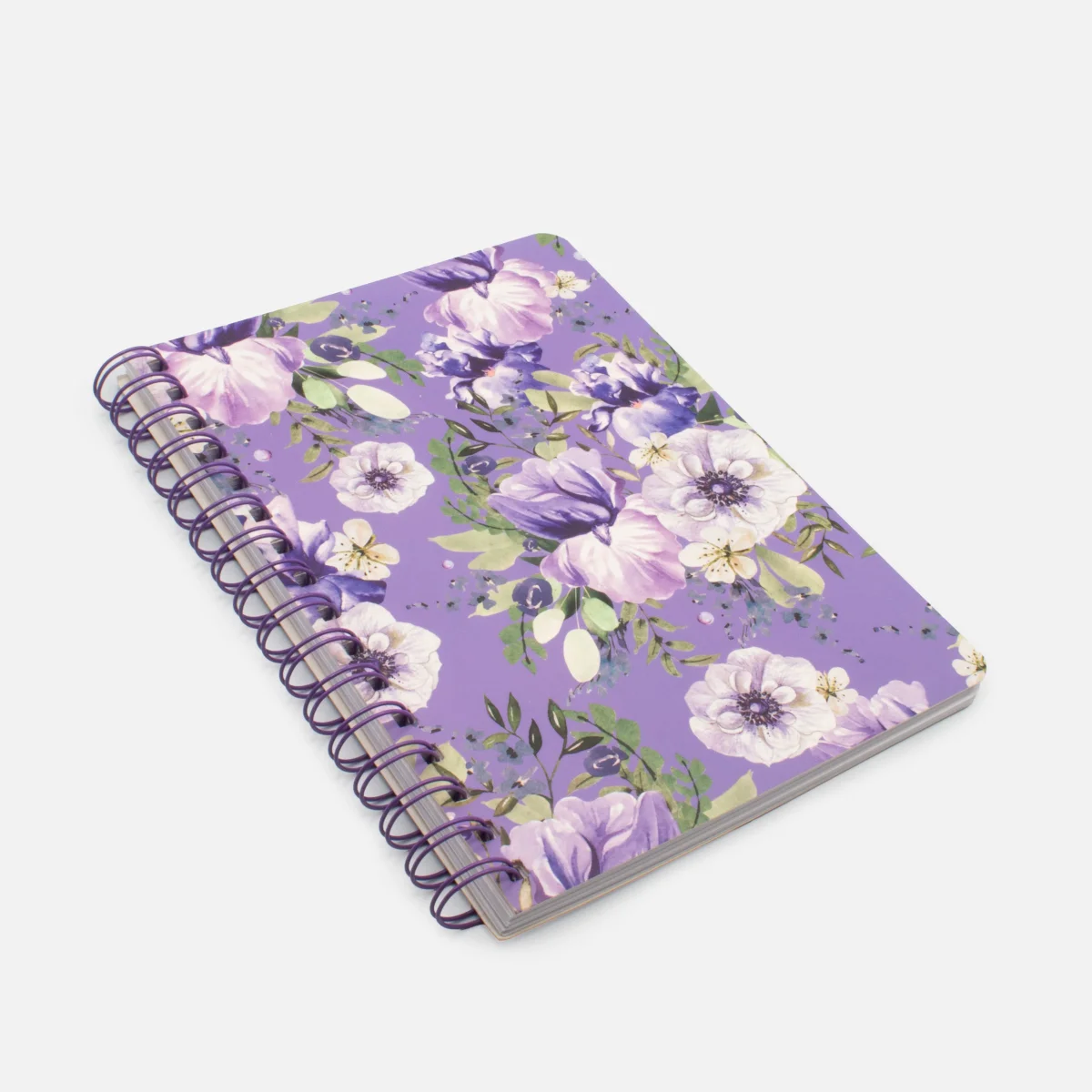 Cahier de notes lilas avec fleurs