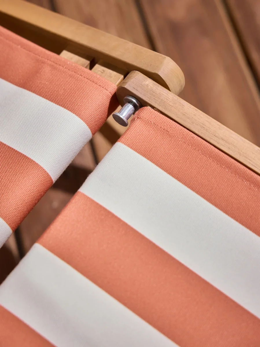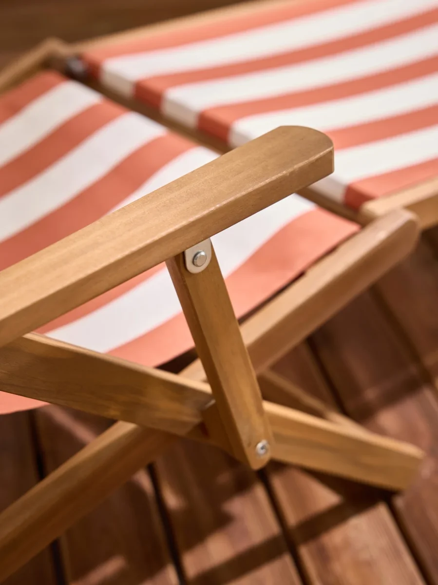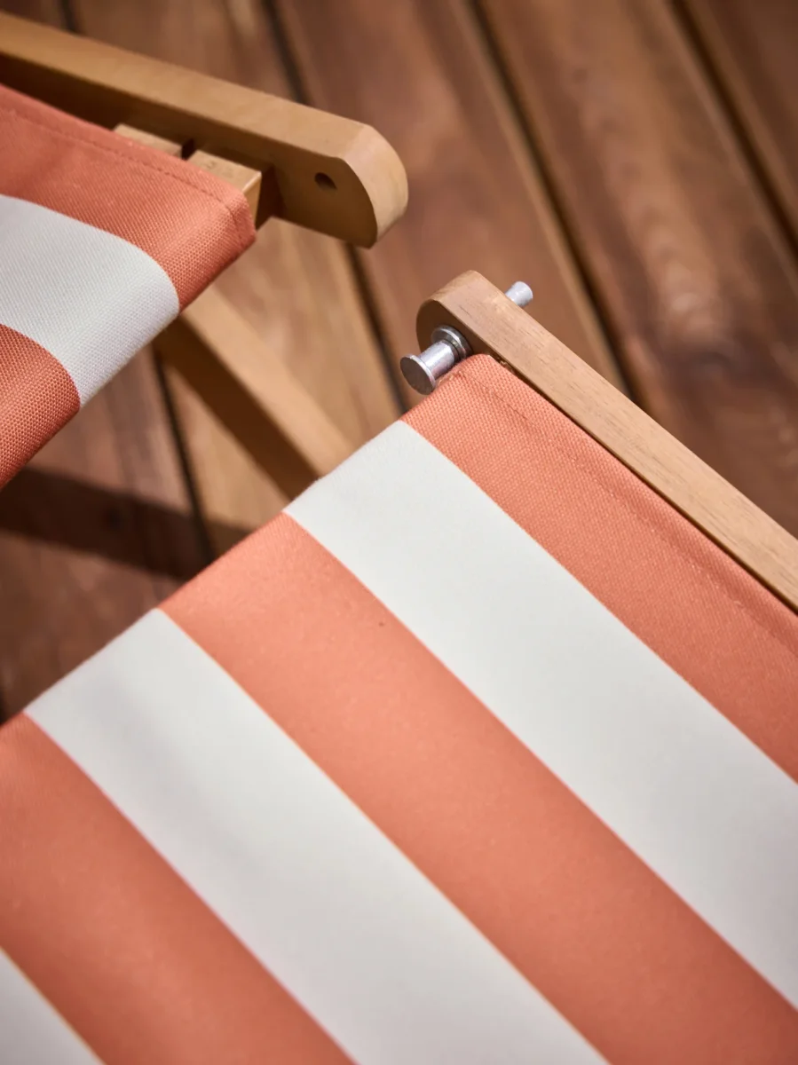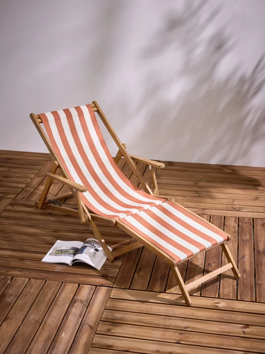 Chaise longue pour chiller* en beauté tout l’été ! Avec ses accoudoirs, son repose-pieds et ses biais écrus, ce transat bicolore allie confort et élégance. Sa toile épaisse aspect coton est détachable, lessivable, sèche rapidement et ne décolore pas au soleil !