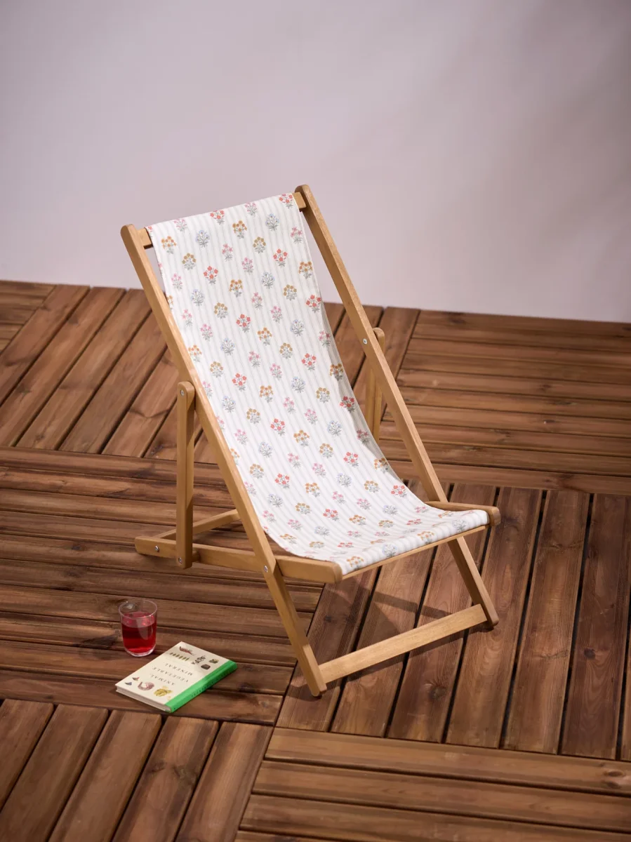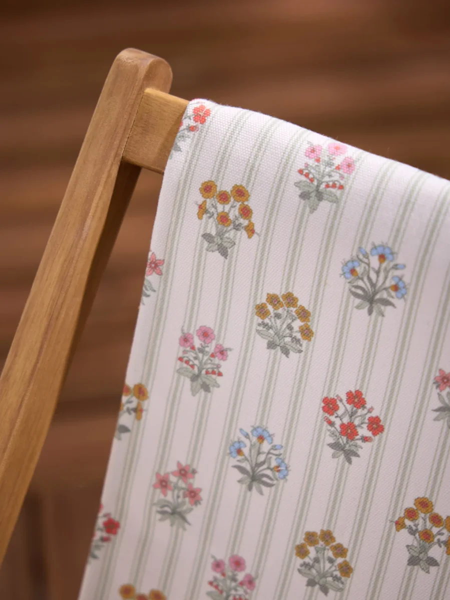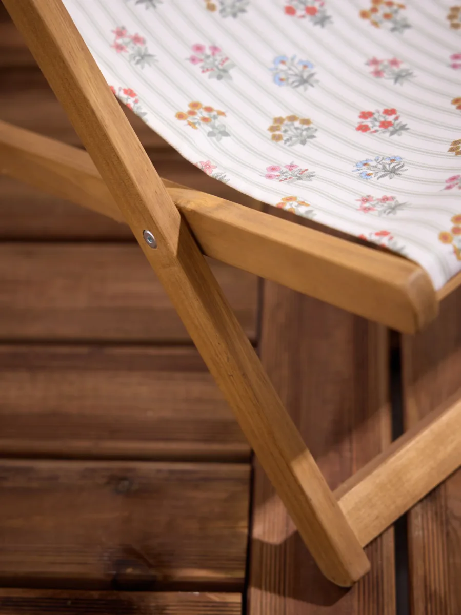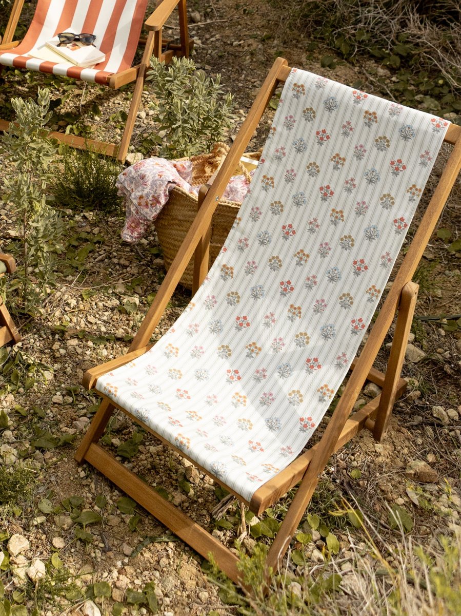 L’indétrônable transat se décline en format XS. Idéal pour la détente des enfants. Son point fort : sa toile épaisse, détachable et lessivable. Existe en version rayée ivoire et vert ou avec notre imprimé exclusif Au jardin.