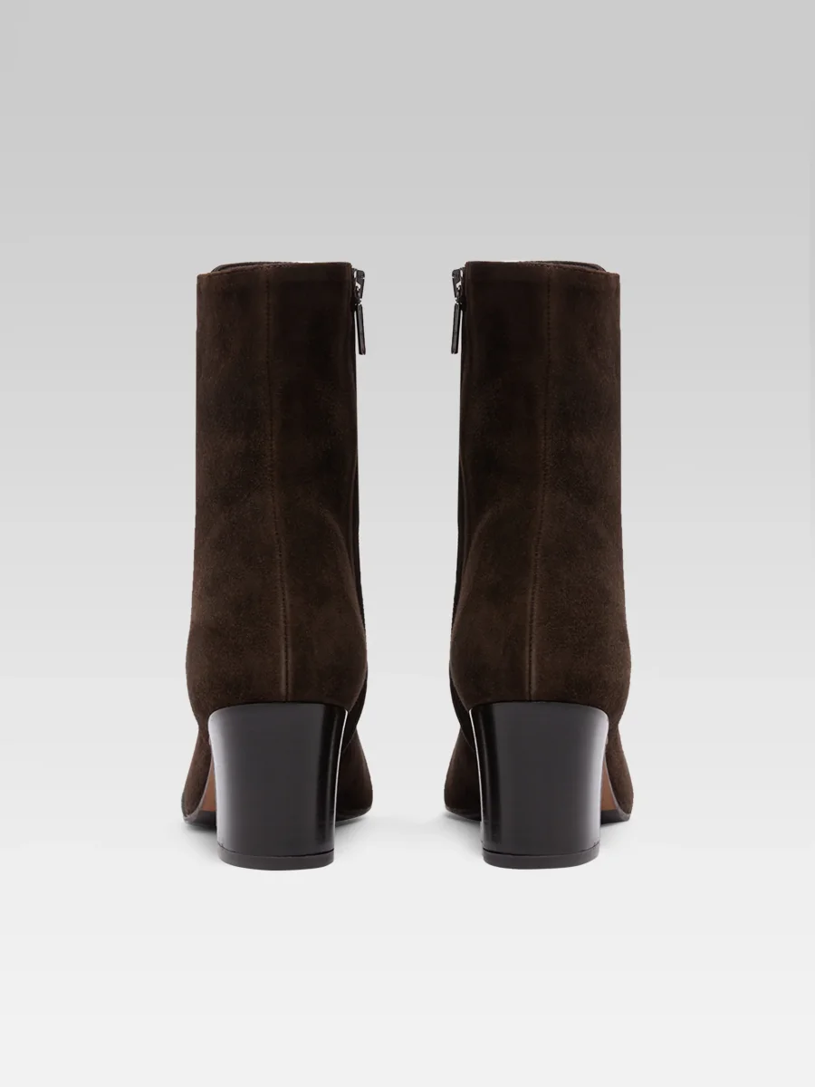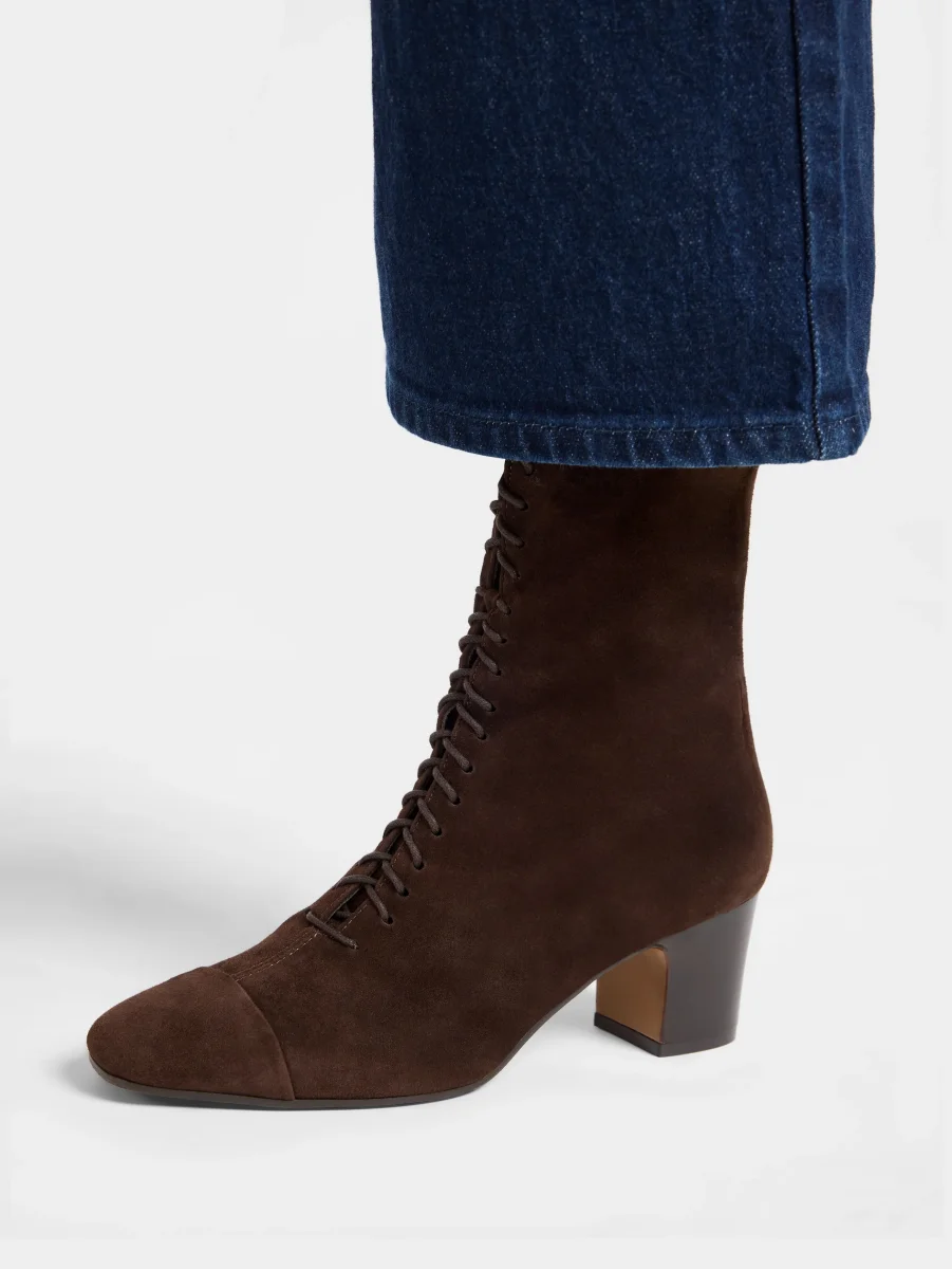 Le modèle Colette est une bottine à tige haute de type « patineuse ». Elle repose sur un talon à gorge de 5 cm et s’agrémente d’un bout droit. Une fermeture intérieure permet d’enfiler la chaussure et les lacets sur la tige permettent de l’adapter facilement à votre cheville. Ce modèle est disponible en différents coloris à découvrir ci-dessus.