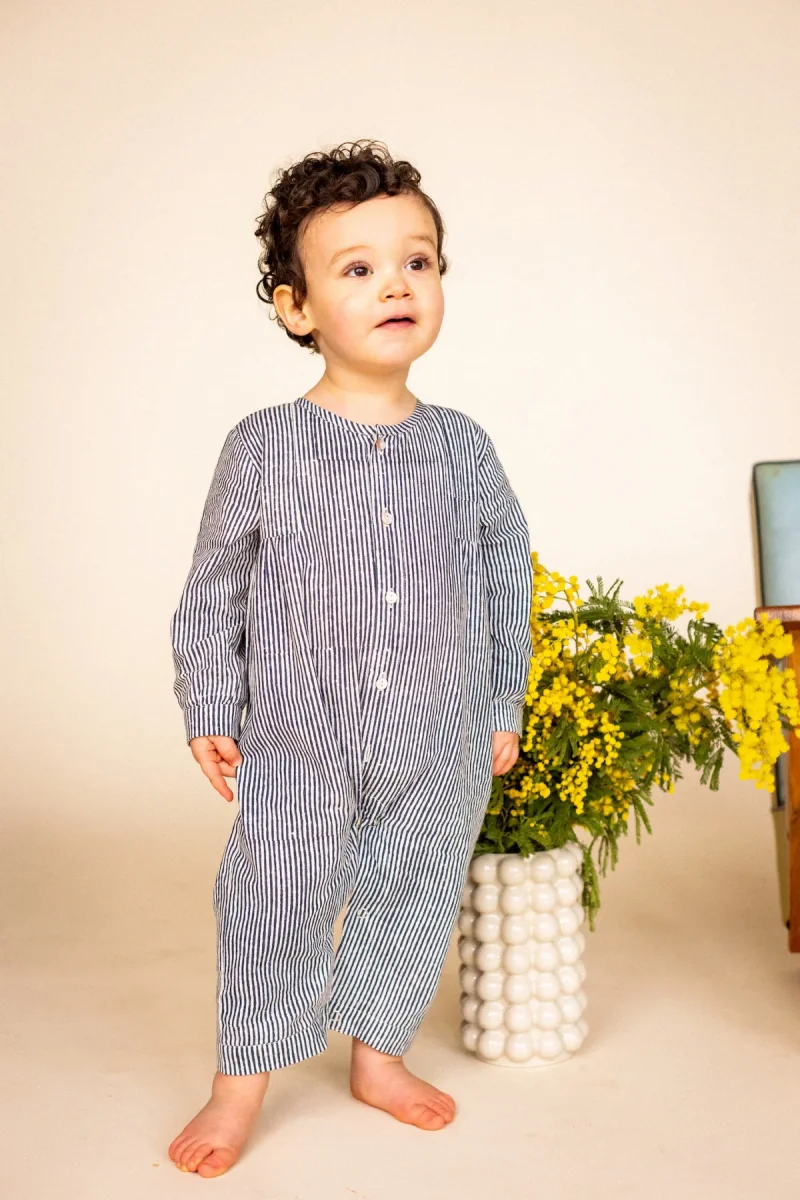 Vous allez adorer voir gambader, grandir, vivre vos bébés dans nos pyjamas Muni. En effet, comment ne pas craquer pour ce modèle combinaison pimpé par des rayures apposées grâce à la technique du block print indien ! Vous allez adorer savoir que les couleurs sont réalisées grâce à des pigments naturels et que le rinçage se fait dans un mélange d’eau et de vinaige blanc, rien d’agrésif pour vos bébés pour des nuits aussi douces que réparatrices !