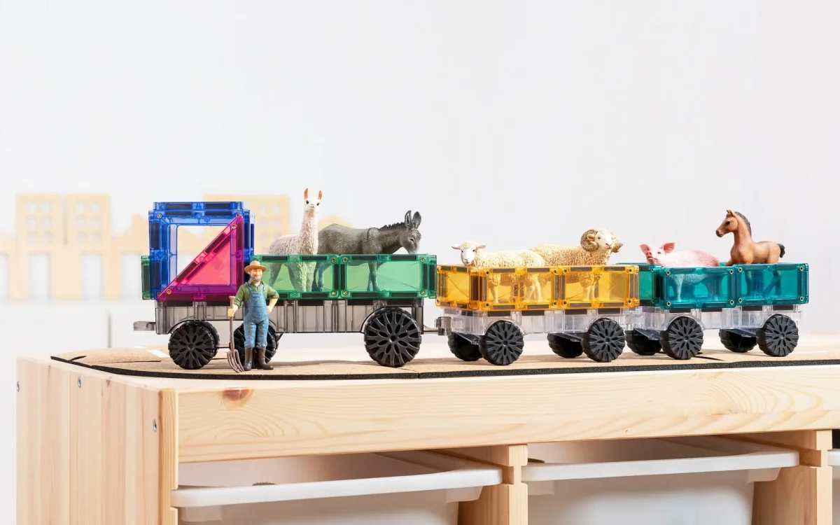 Découvrez l’apprentissage STEAM en naviguant dans le magnétisme, les formes et les couleurs pour recréer vos propres camions et trains, avions et ambulances, camions de pompiers et chariots élévateurs. Ce pack peut aider les enfants à apprendre les principes d’ingénierie tels que la stabilité, l’équilibre et la symétrie tout en s’engageant dans un jeu imaginatif.