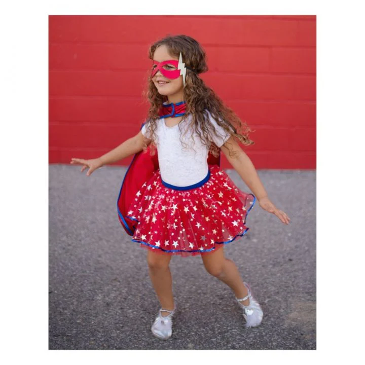 Déguisement de super-héroïne (tunique, cape, masque), 4-6 ans
