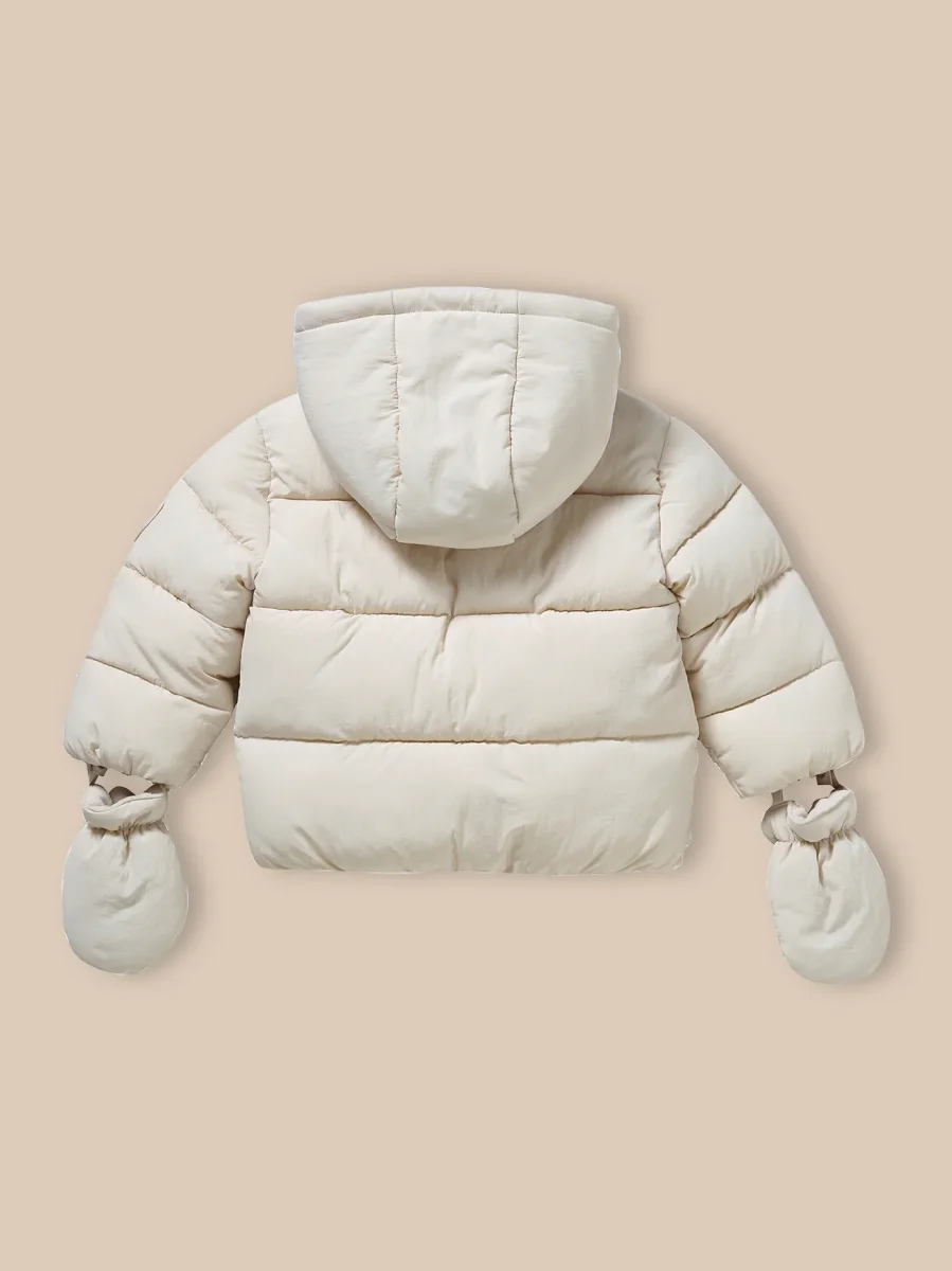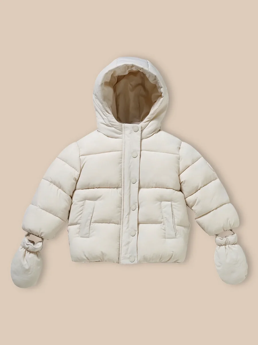 Tissu technique déperlant, doublure douce en polaire, garnissage épais et chaud, capuche protectrice, moufles… Une doudoune de qualité bien pensée pour protéger efficacement votre enfant.