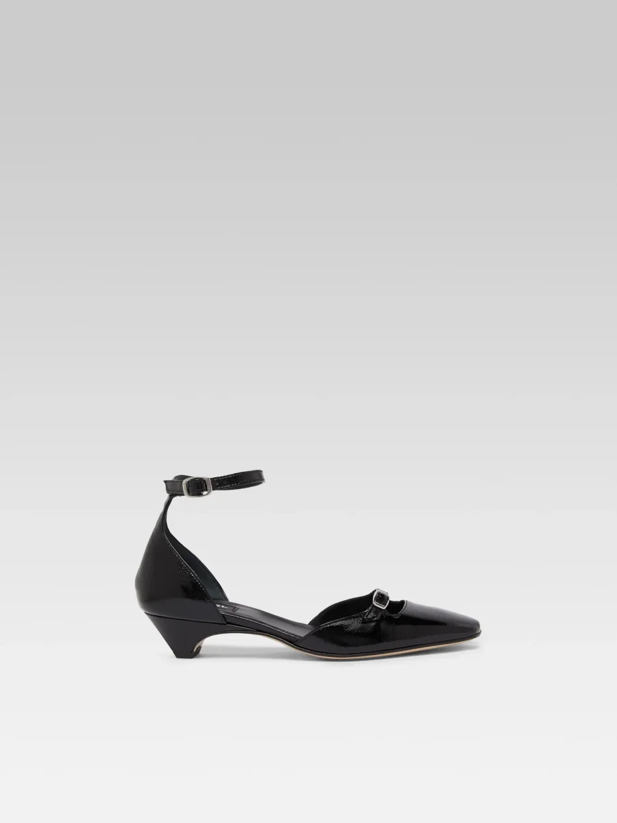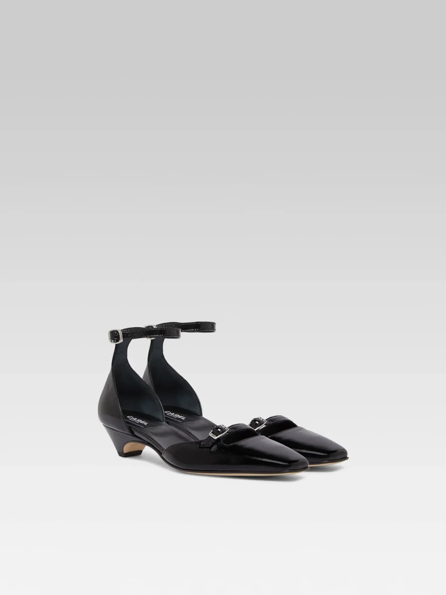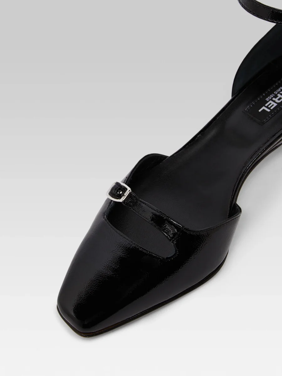 Le modèle Emma, avec son talon graphique et son bout asymétrique, est un nouveau venu dans la famille des ballerines Émilie. Comme l’Émilie, il est doté d’une petite bride réglable près du décolleté. Il se distingue toutefois par ses côtés ouverts et sa bride à la cheville.