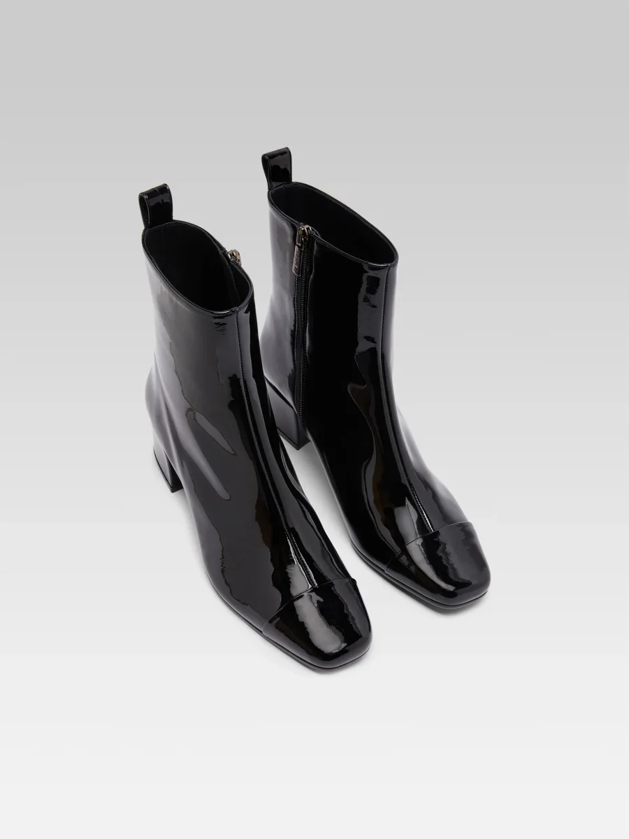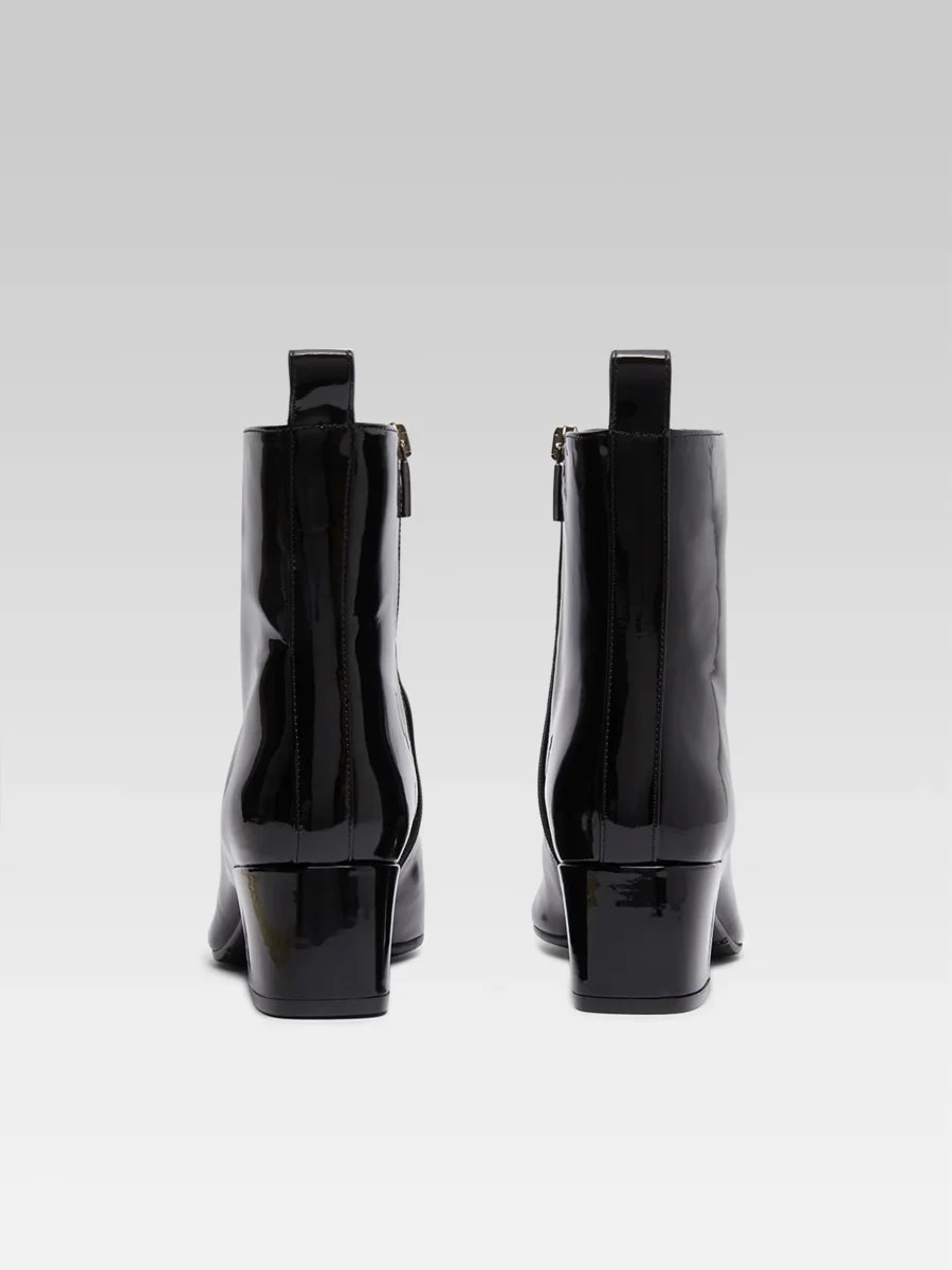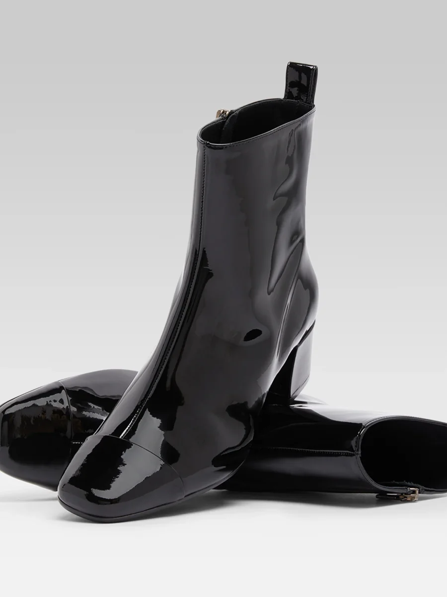 Cette bottine aux inspirations sixties incarne avec son bout droit contrastant, la signature de la maison Carel. Distinguable par son talon trotteur qui apporte confort et stabilité, une bottine aux lignes épurées qui s’adapte à tous les looks.