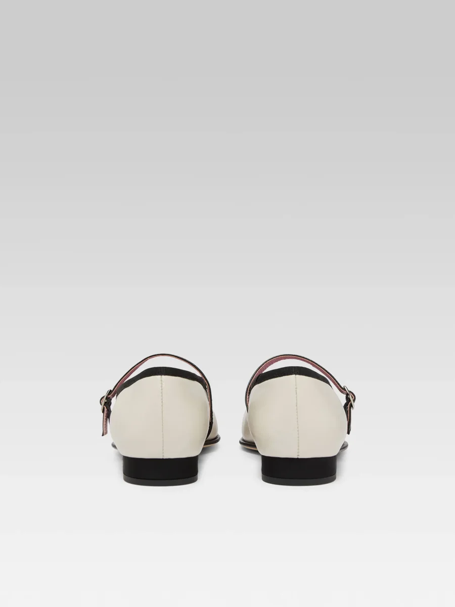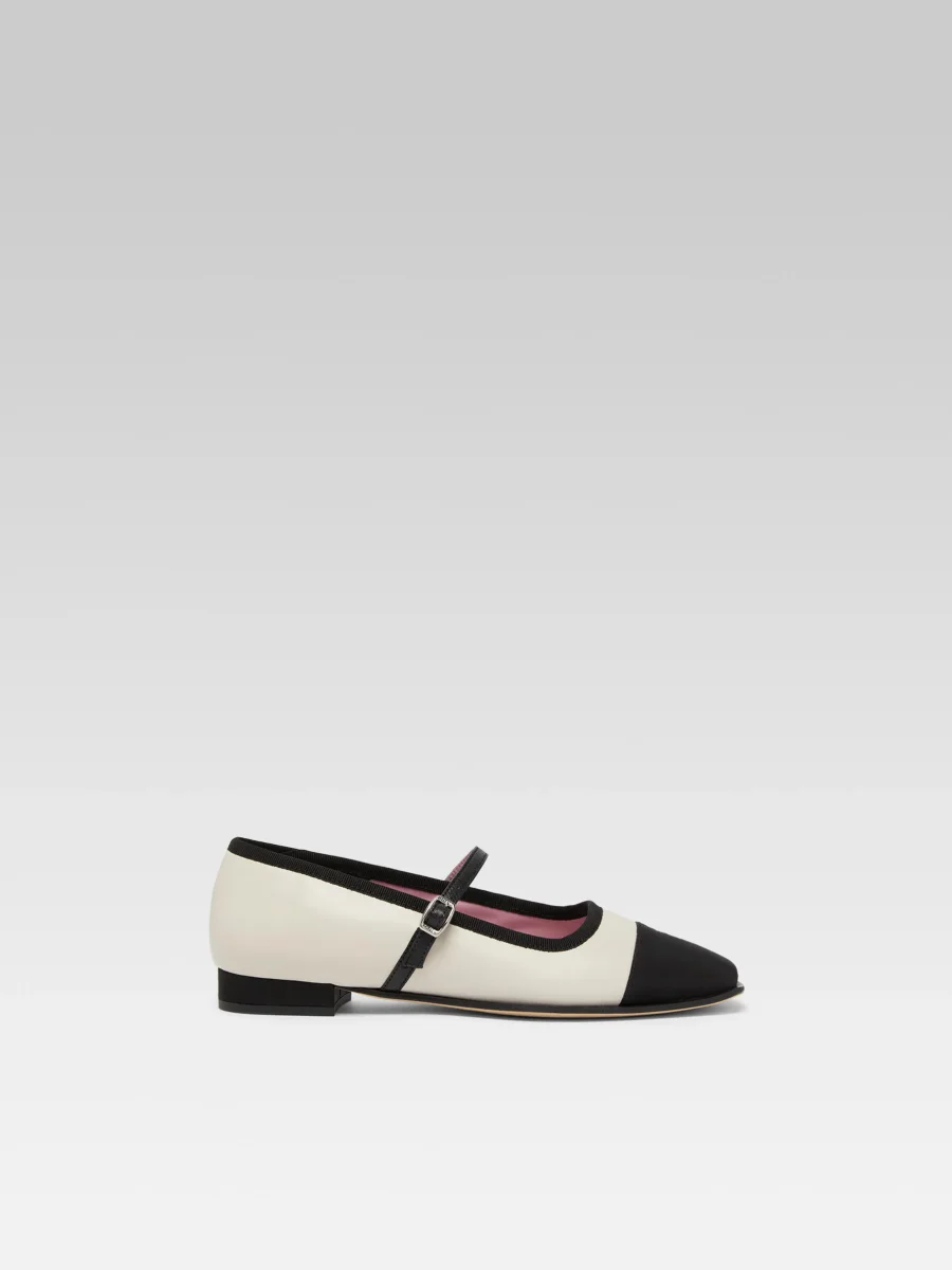 Gisele – Ballerines babies cuir beige et gros grain noir