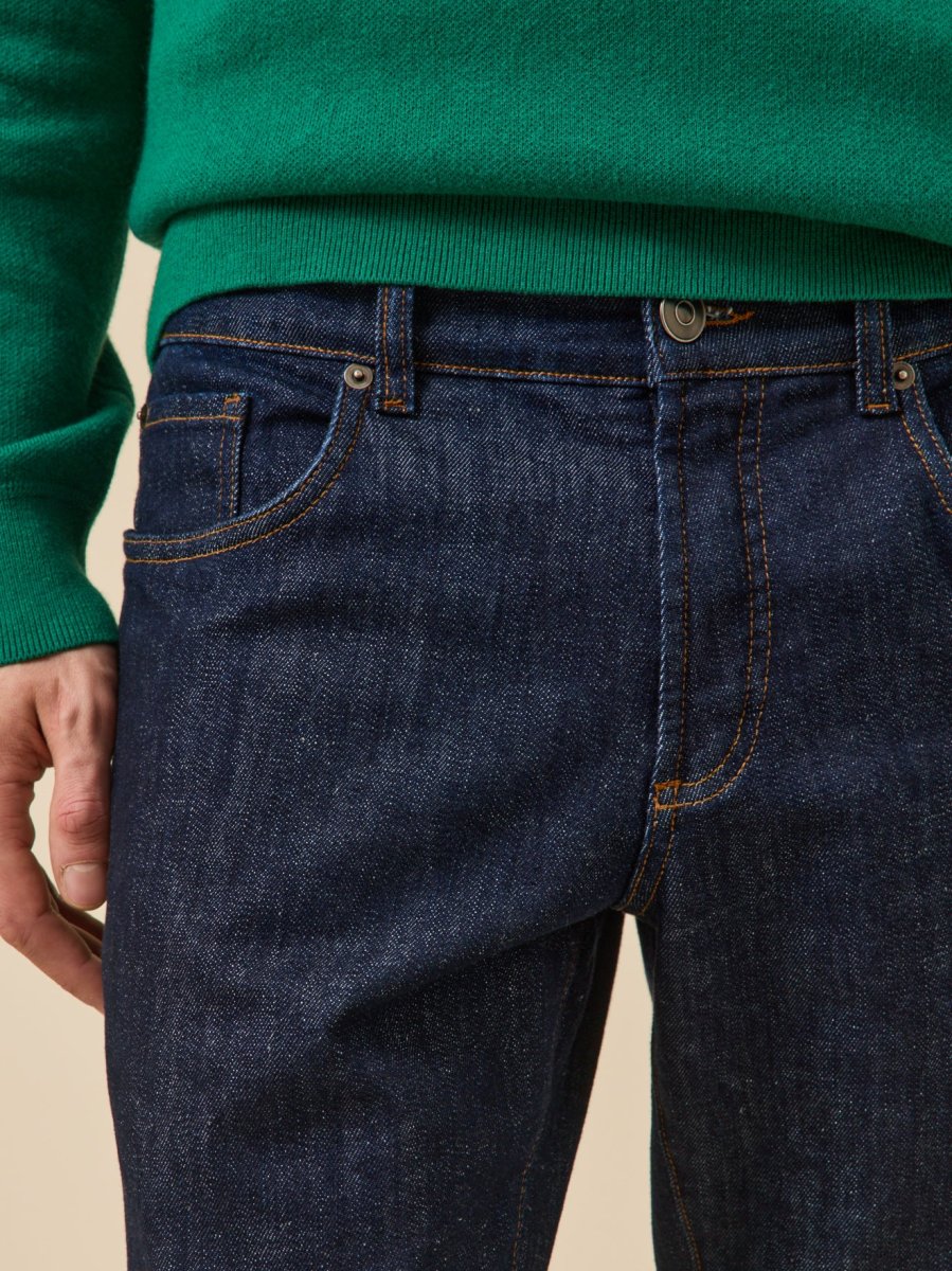 Facile à porter, l’indispensable jean 5 poches compose avec tous les styles. Confectionné en coton biologique avec une touche d’élasthanne pour plus de confort, il allie l’allure authentique d’une toile brute à une coupe droite intemporelle.