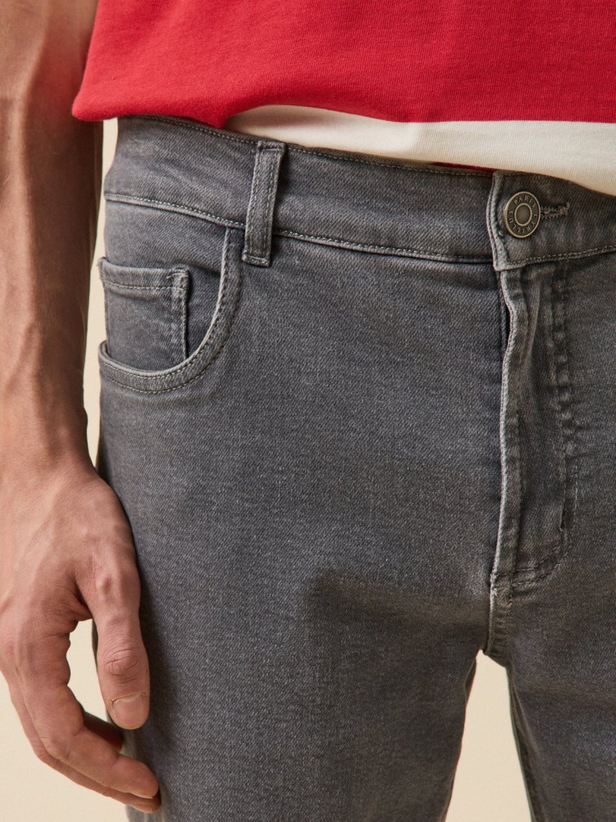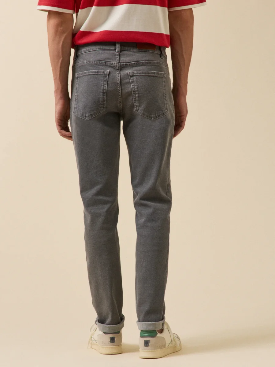 Confectionné en coton biologique avec une touche d’élasthanne pour plus de confort, l’indispensable 5 poches dans une coupe droite intemporelle et un coloris facile à porter au quotidien.