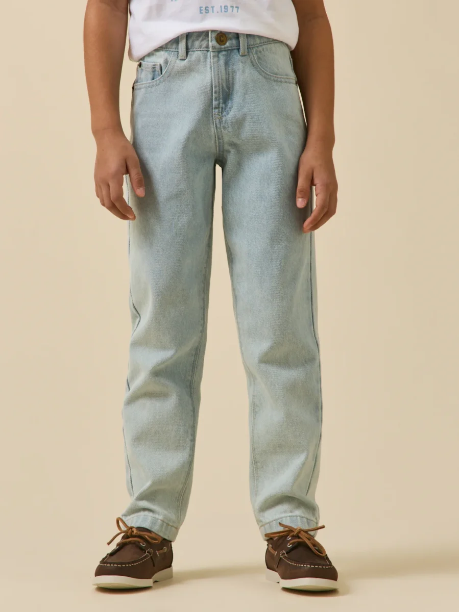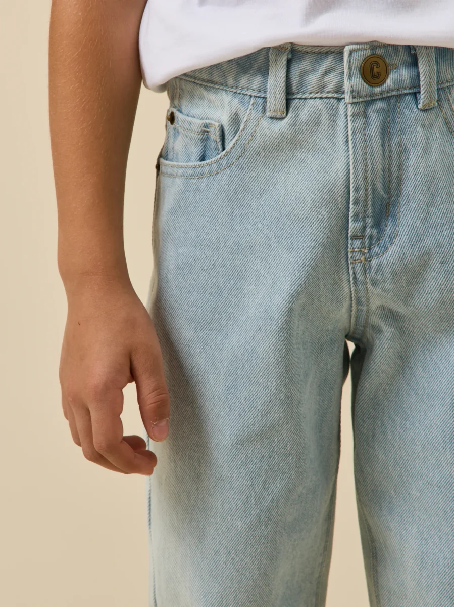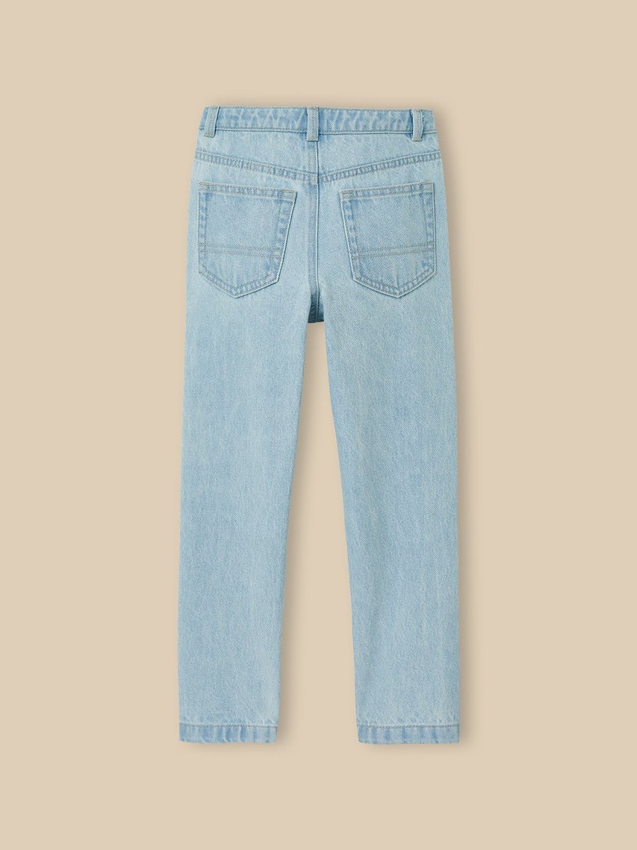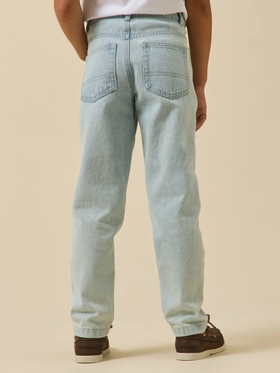 Un jean à la coupe balloon, plus large et décontractée . Avec son coloris bleach, il se coordonne à tout le vestiaire estival. 5 poches. Taille ajustable de l’intérieur par un élastique boutonné Fermeture par bouton et glissière Pour un habillage facilité, nos pantalons ont un bouton-pression jusqu’à la taille 10 ans