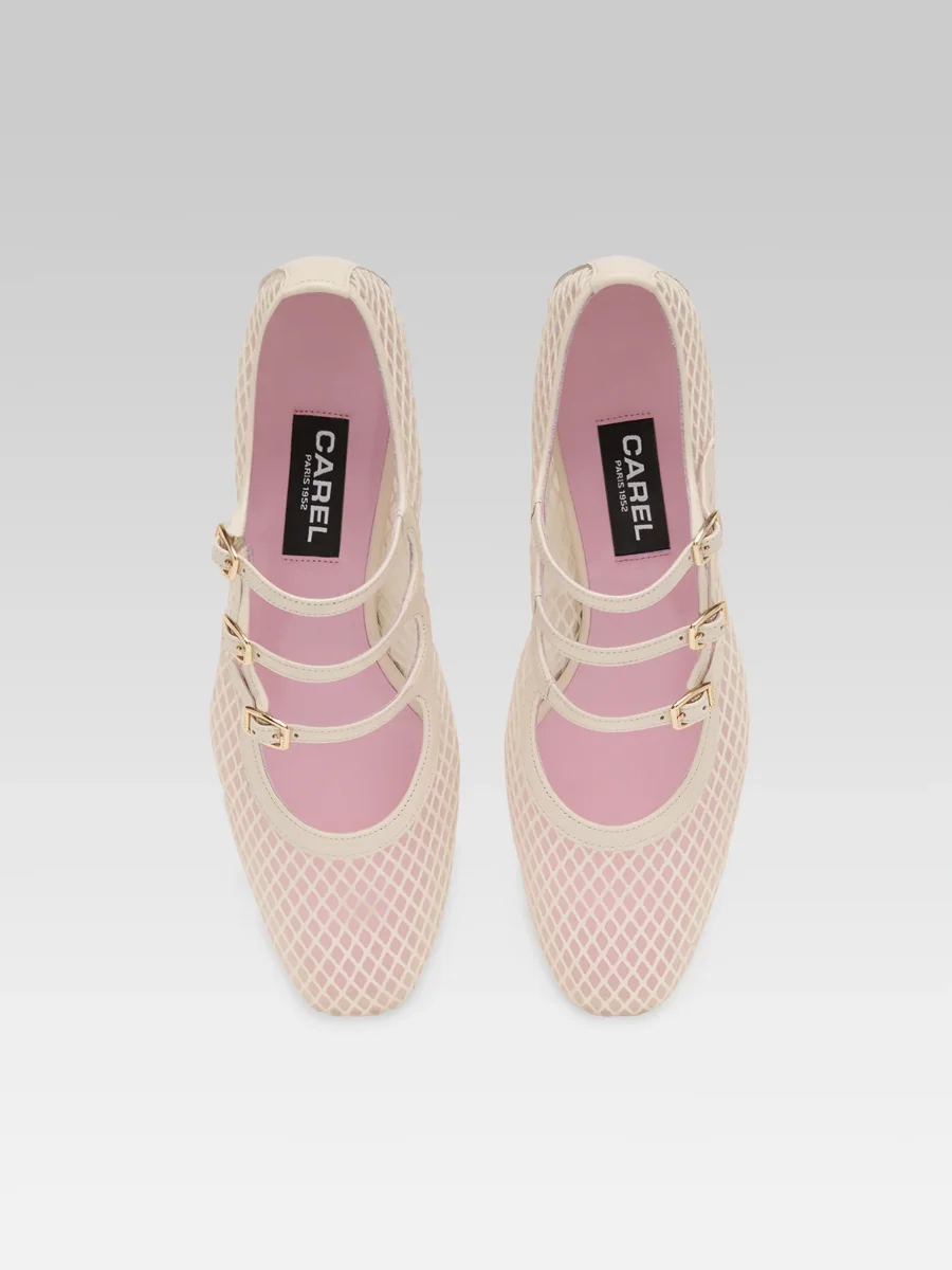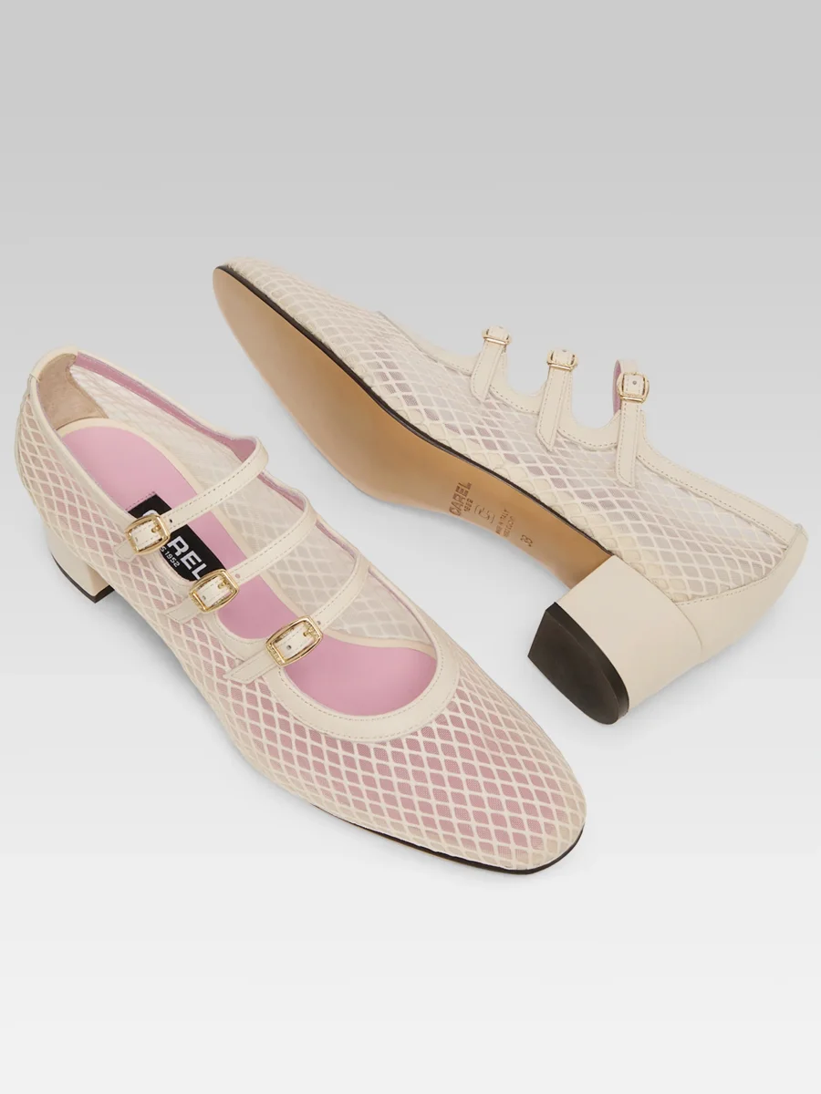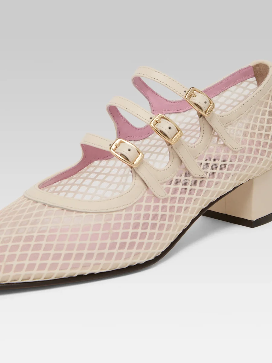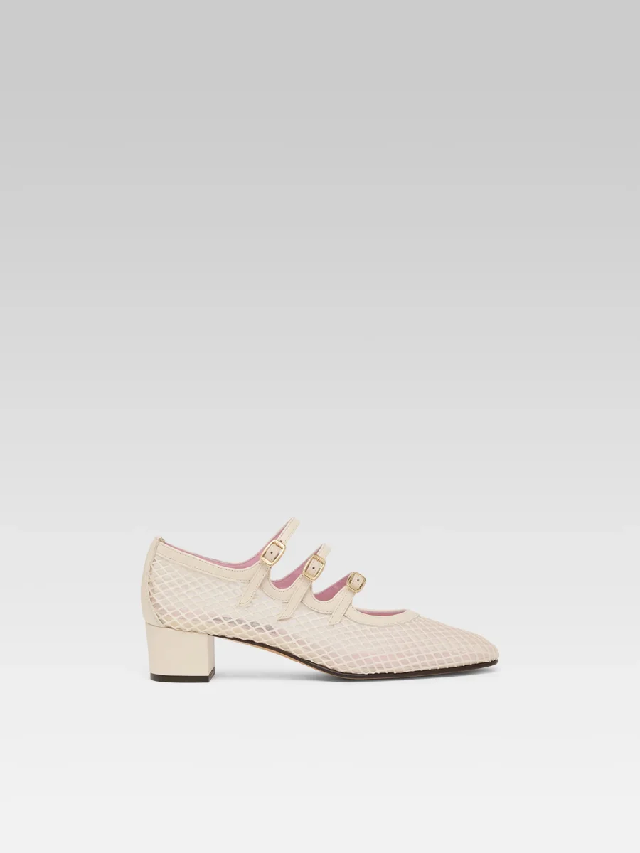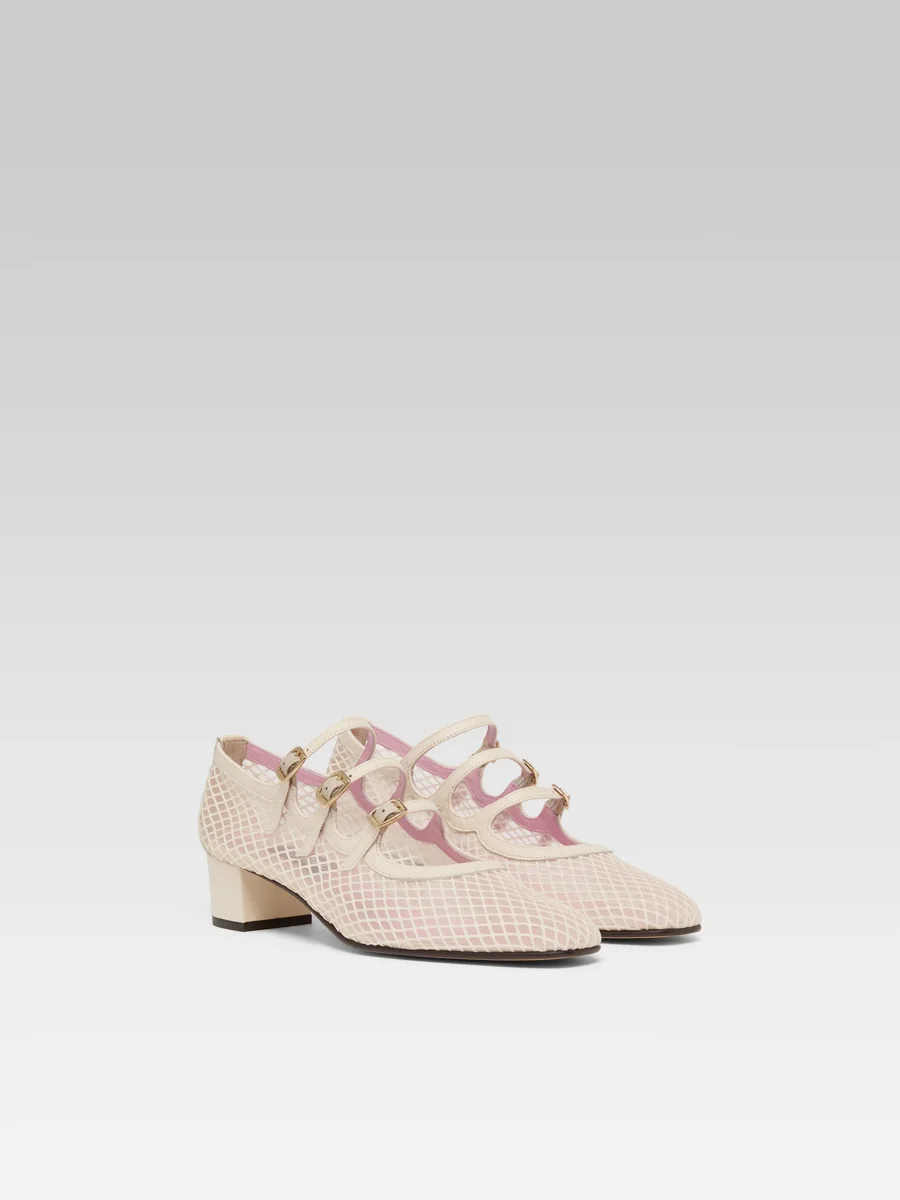 Kina – Escarpins babies résille et cuir ivoire
