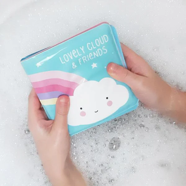 QUELLES SONT LES SPÉCIFICITÉS DU LIVRE DE BAIN NUAGE ET AMIS DE LA MARQUE A LITTLE LOVELY COMPANY ?