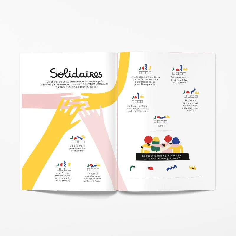 Quelle chance d’avoir des frères et sœurs ! Un jour, on se dit des horreurs, le lendemain, on pouffe de rire. Voici un livre à remplir ensemble pour s’étonner de ses différences, se lâcher sur les parents, se plaindre un peu et surtout prendre conscience de ce que chacun apporte à la tribu. Idéal pour renforcer les liens de la fratrie.