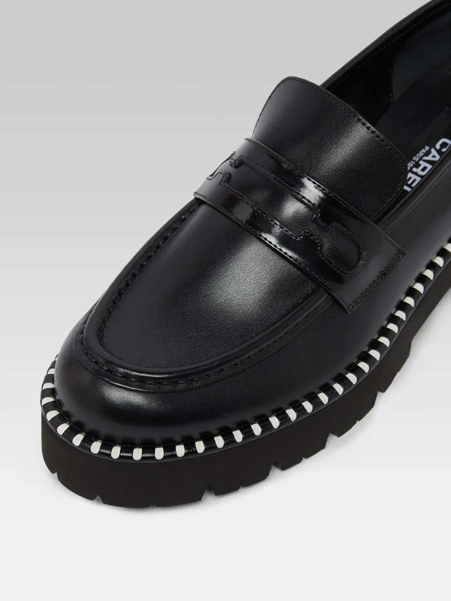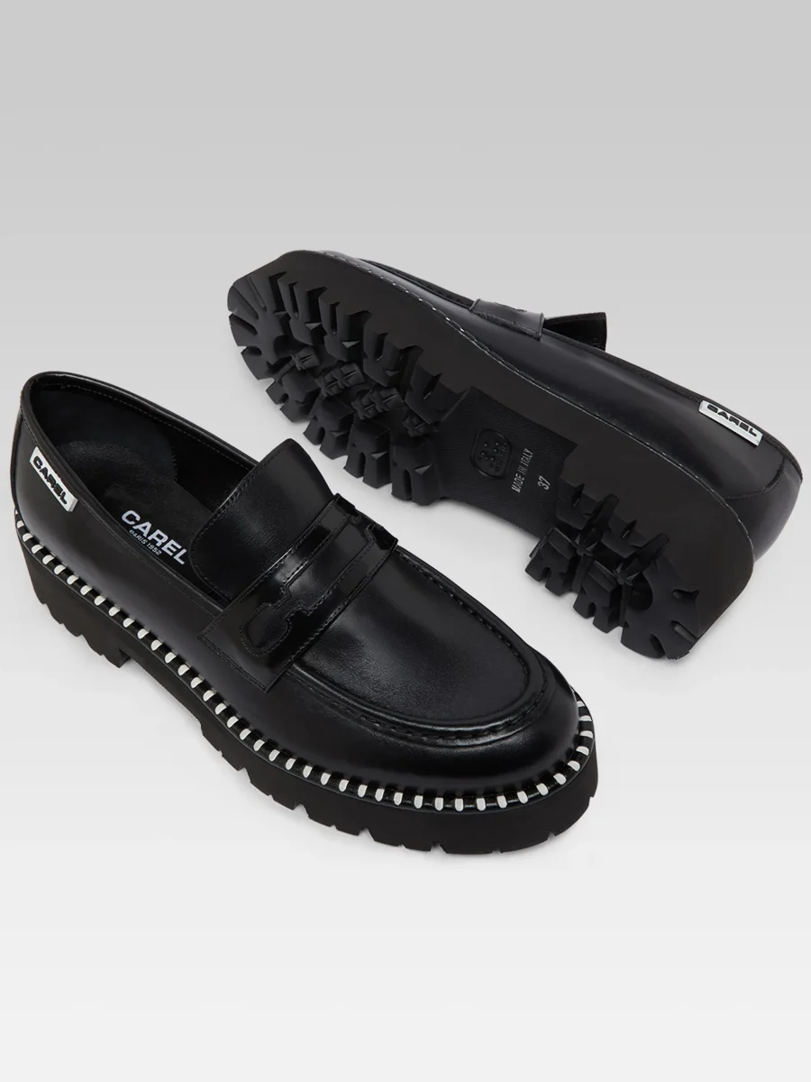 Les nouveaux mocassins Marion ont été imaginés sur une semelle de gomme légère et confortable, parfaite pour vous accompagner au quotidien. La découpe dans le mors est un clin d’oeil au logo de la maison.