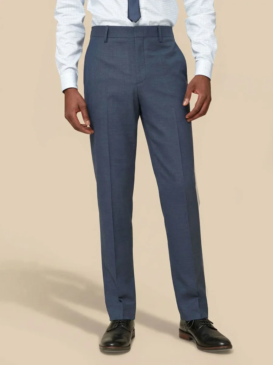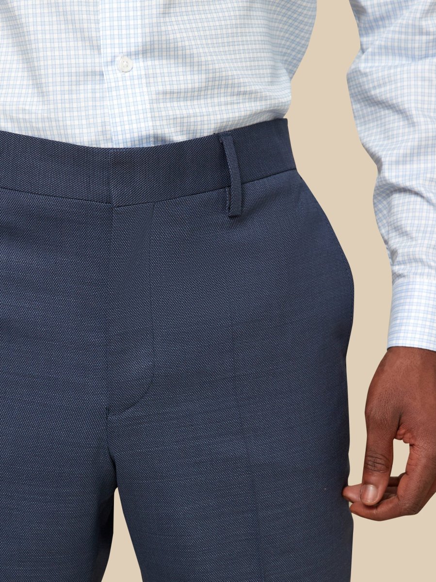 Volume raccourci sur un remarquable tissu texturé. Notre pantalon de costume s’offre un look plus actuel, plus souple, plus confortable. Avec sa veste coordonnée ou en mode solo avec une chemise unie ou un T-shirt, il assure un style citadin impeccable.