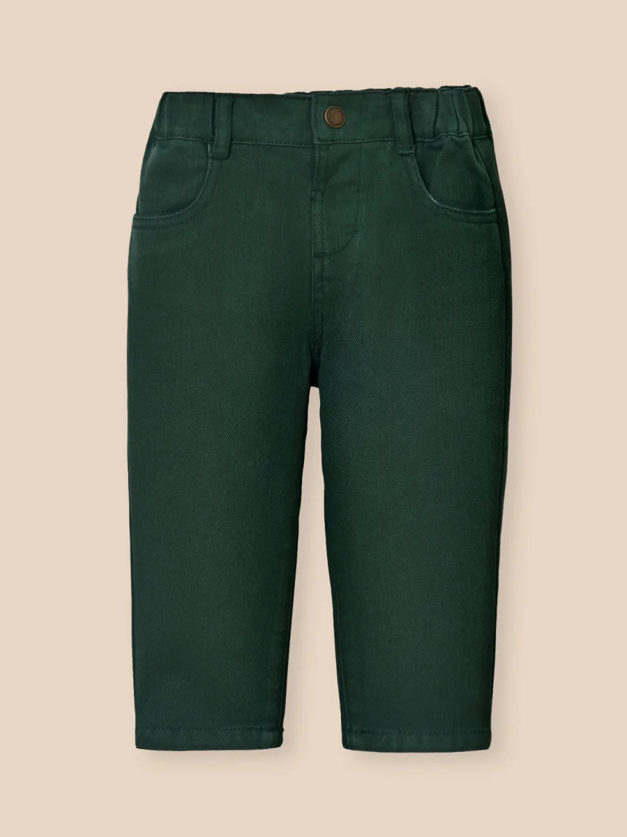Le pantalon confortable avec sa taille élastiquée, facile à associer avec ses coloris en accord avec notre collection bébé.