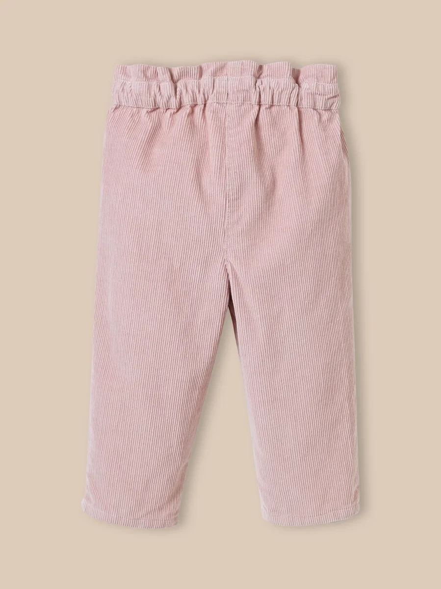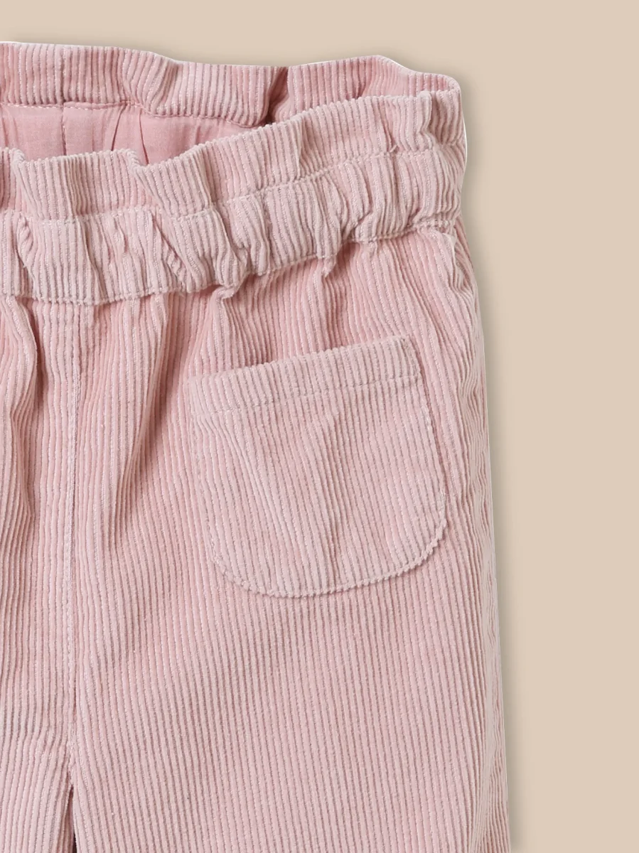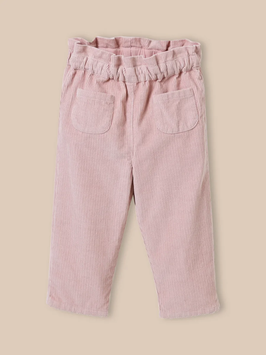 Une coupe paperbag, une taille élastiquée réglable, des couleurs douces…. ce pantalon en velours est idéal pour un quotidien raffiné.