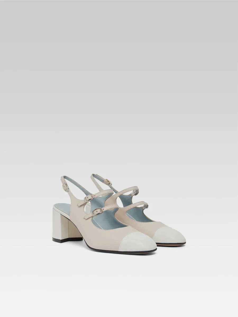 Papaya – Babies slingback cuir nude et cuir verni blanc