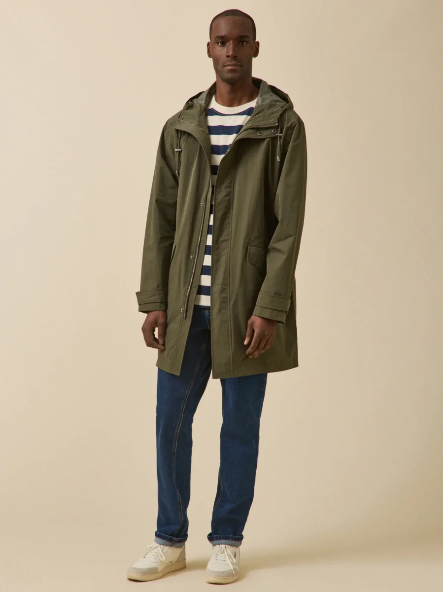 Conçue pour le citadin actif, la parka d’été mise sur un tissu technique déperlant qui défie les imprévus. Son col montant et sa capuche généreuse assurent une protection optimale, tandis que ses poches pressionnées garantissent la sécurité de vos essentiels. Une pièce au design épuré qui signe une allure impeccable en toutes circonstances, des trajets urbains aux sorties de plein air.