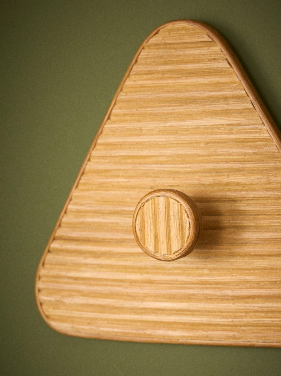 Forme triangle arrondi, matière 100% naturelle et allure rétro : la patère Céleste est un objet du quotidien utile, original et décoratif. Grande patère en rotin lamellé fabriquée en Indonésie de façon artisanale.