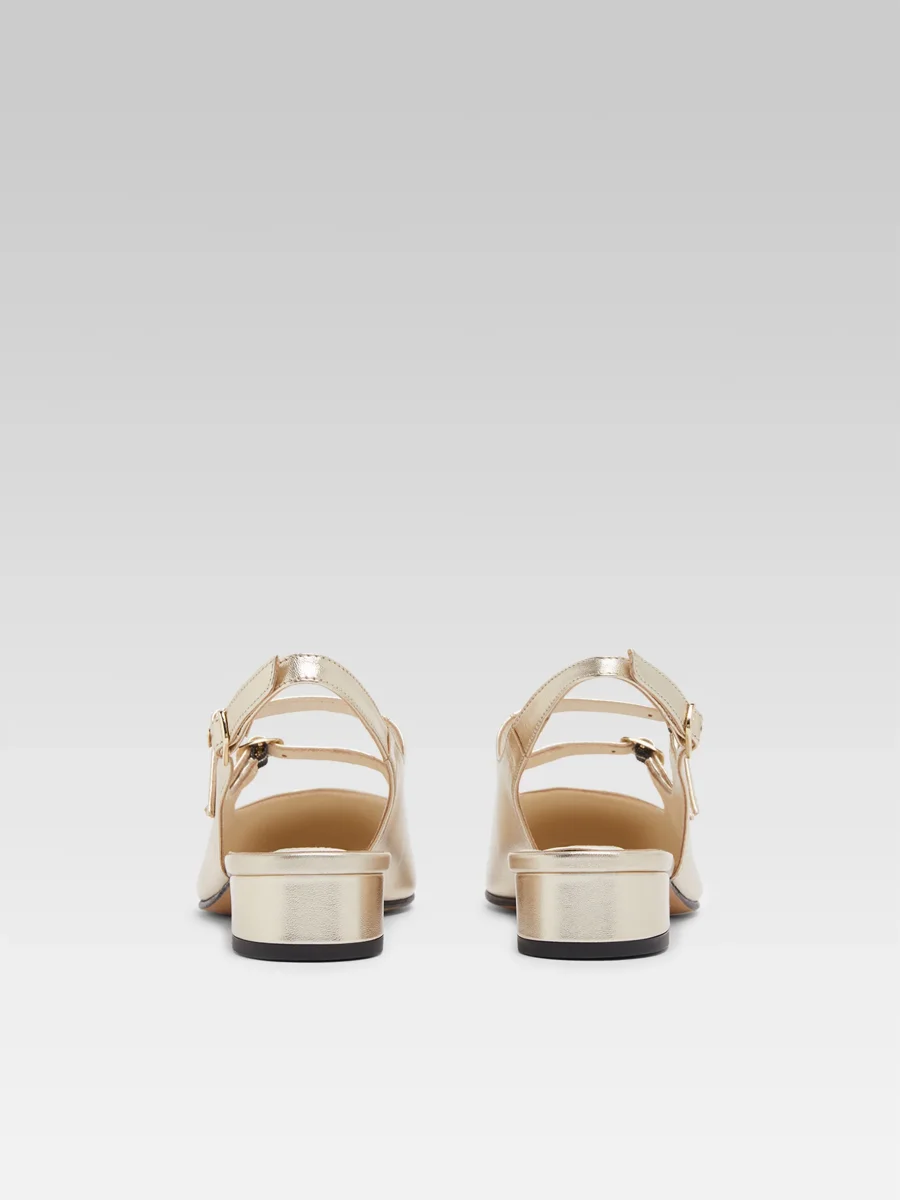 Inspiré de la ballerine Ariana, le modèle Pêche, est doté d’un petit talon lui apportant un confort quotidien, complété par deux brides avant et une arrière ajustables qui viennent habiller élégamment le pied.