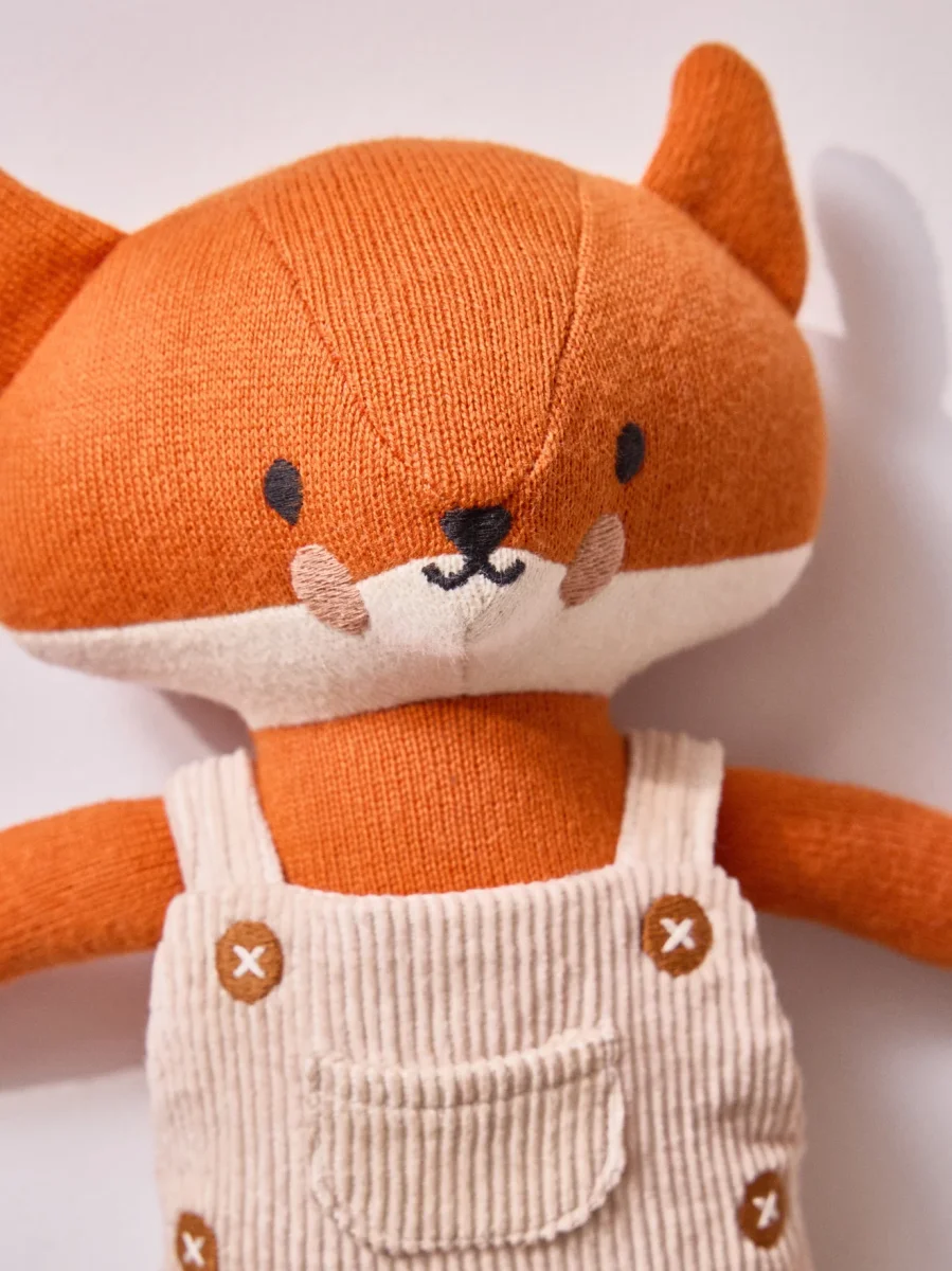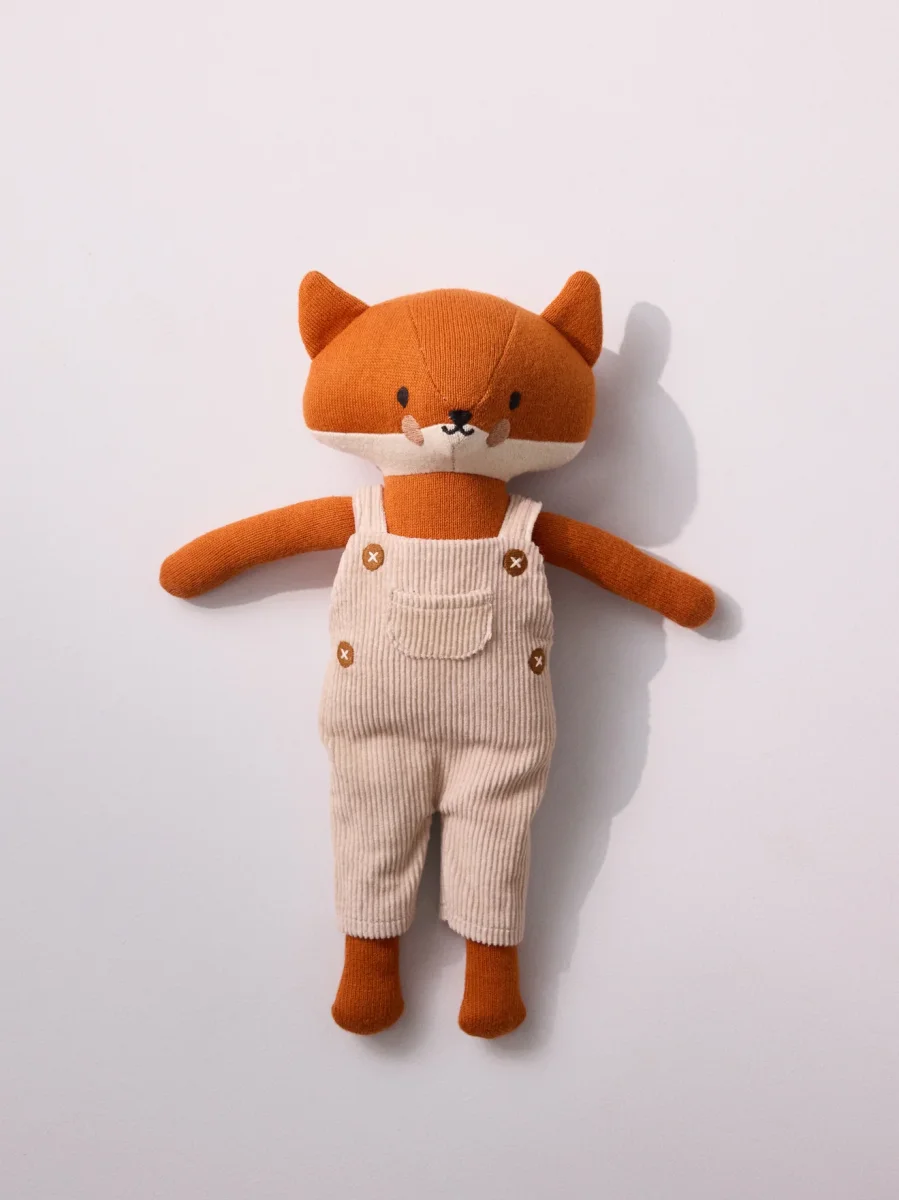 Compagnon réconfortant en tricot, habillé d’une salopette en velours amovible, il accompagne les enfants dans de tendres histoires empreintes de douceur et d’imaginaire.