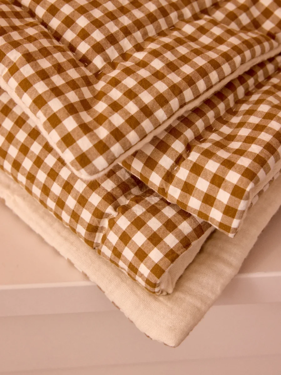 Petit boutis en gaze de coton imprimé d’un côté et uni de l’autre. Rembourré, il est moelleux et confortable. Il est idéal pour réchauffer les tout-petits dans leur lit mais aussi comme tapis d’éveil.