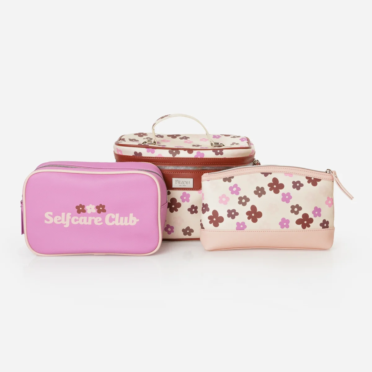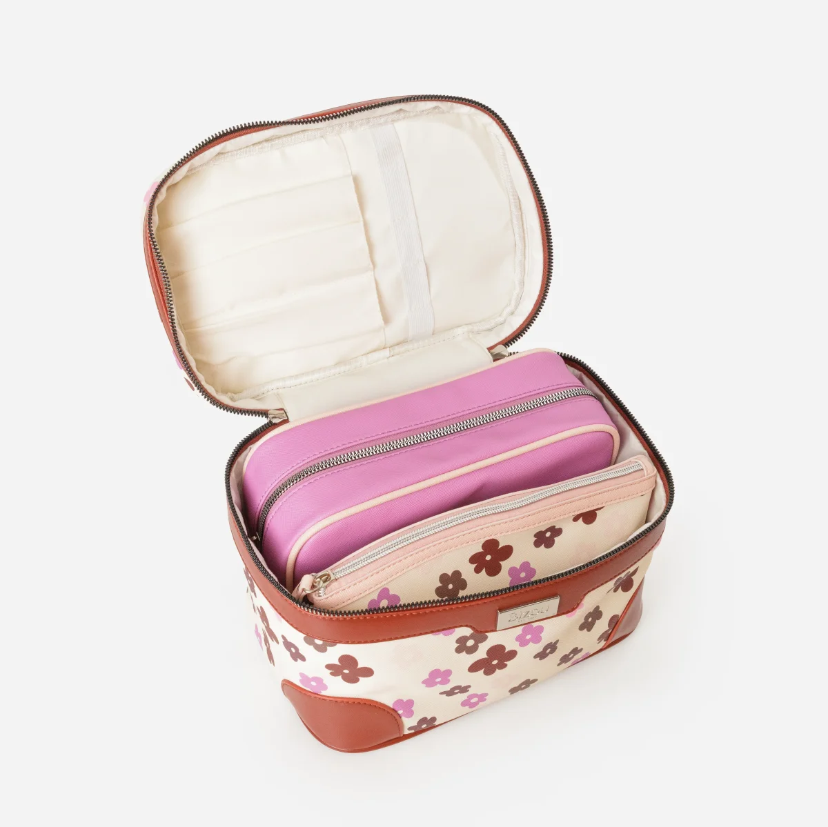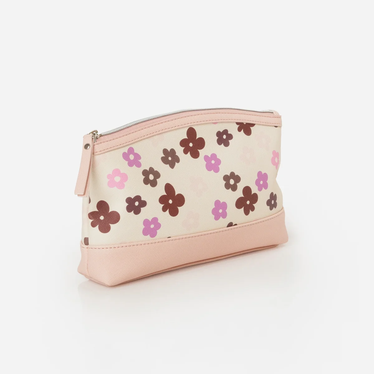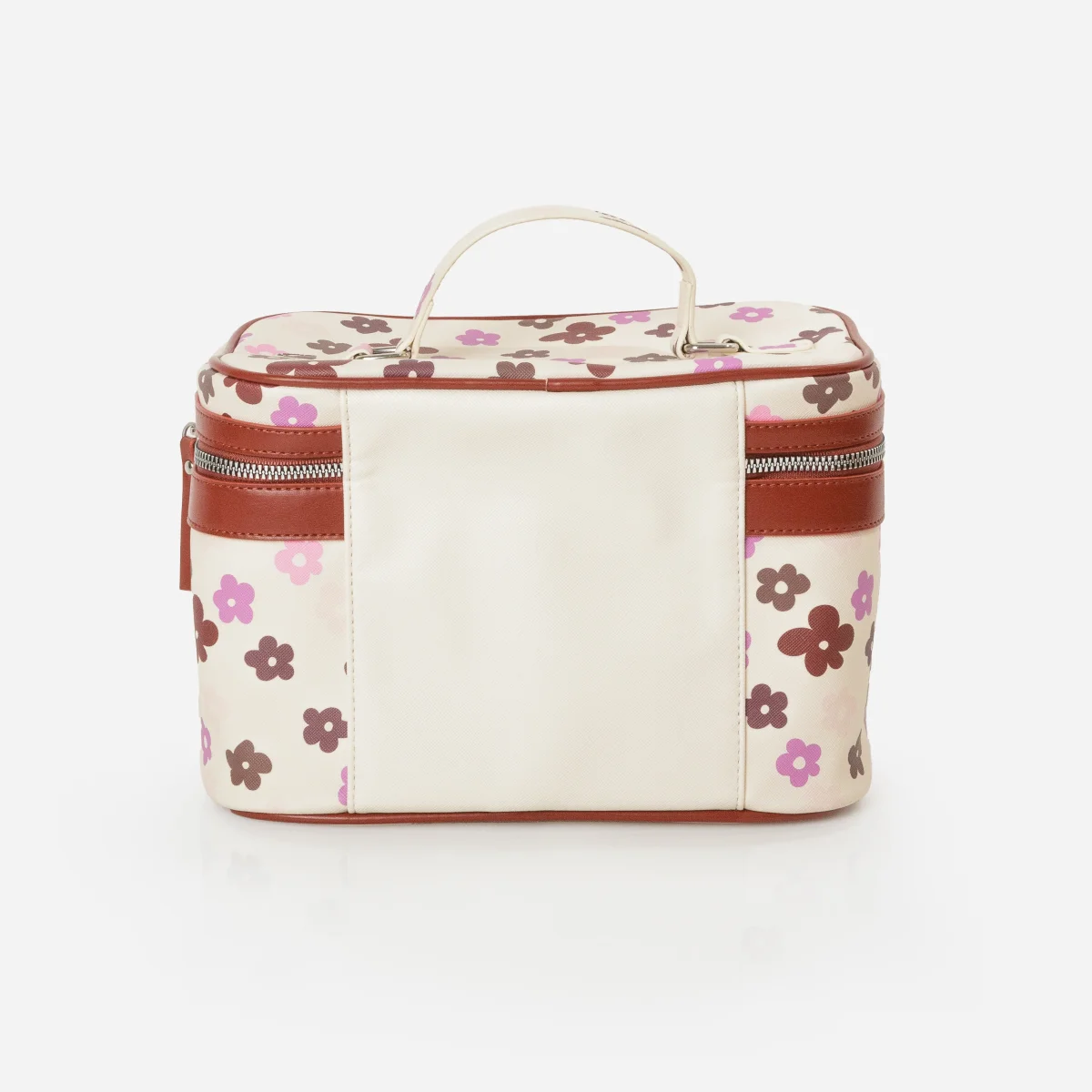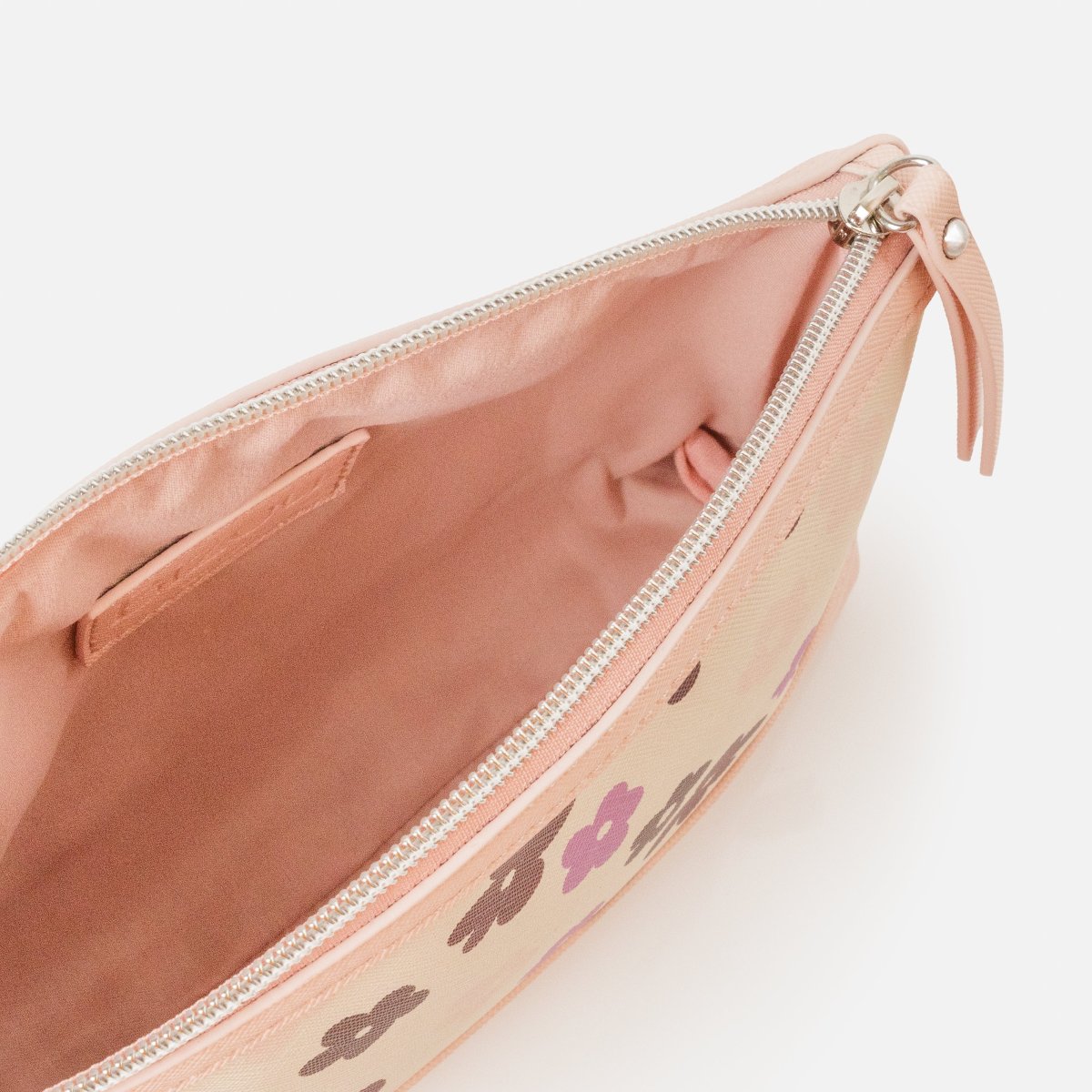 Pochette à cosmétiques 3 en 1 beige avec fleurs colorées