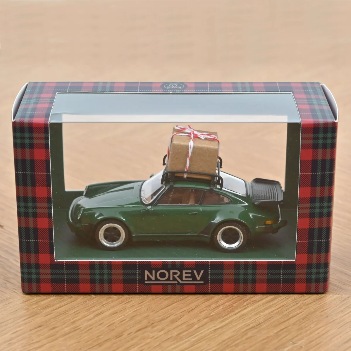 Élégante et festive, la Porsche 911 Turbo 1978 se pare d’un superbe vert profond pour célébrer Noël avec style. Sur sa galerie, un joli cadeau kraft noué d’une ficelle rouge et blanche évoque l’ambiance des fêtes et la magie des trajets enneigés.