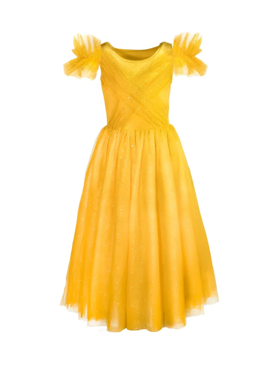 Transformez votre enfant en une belle étoile baignée de soleil avec notre version de rêve de la robe de bal de Belle jaune emblématique.