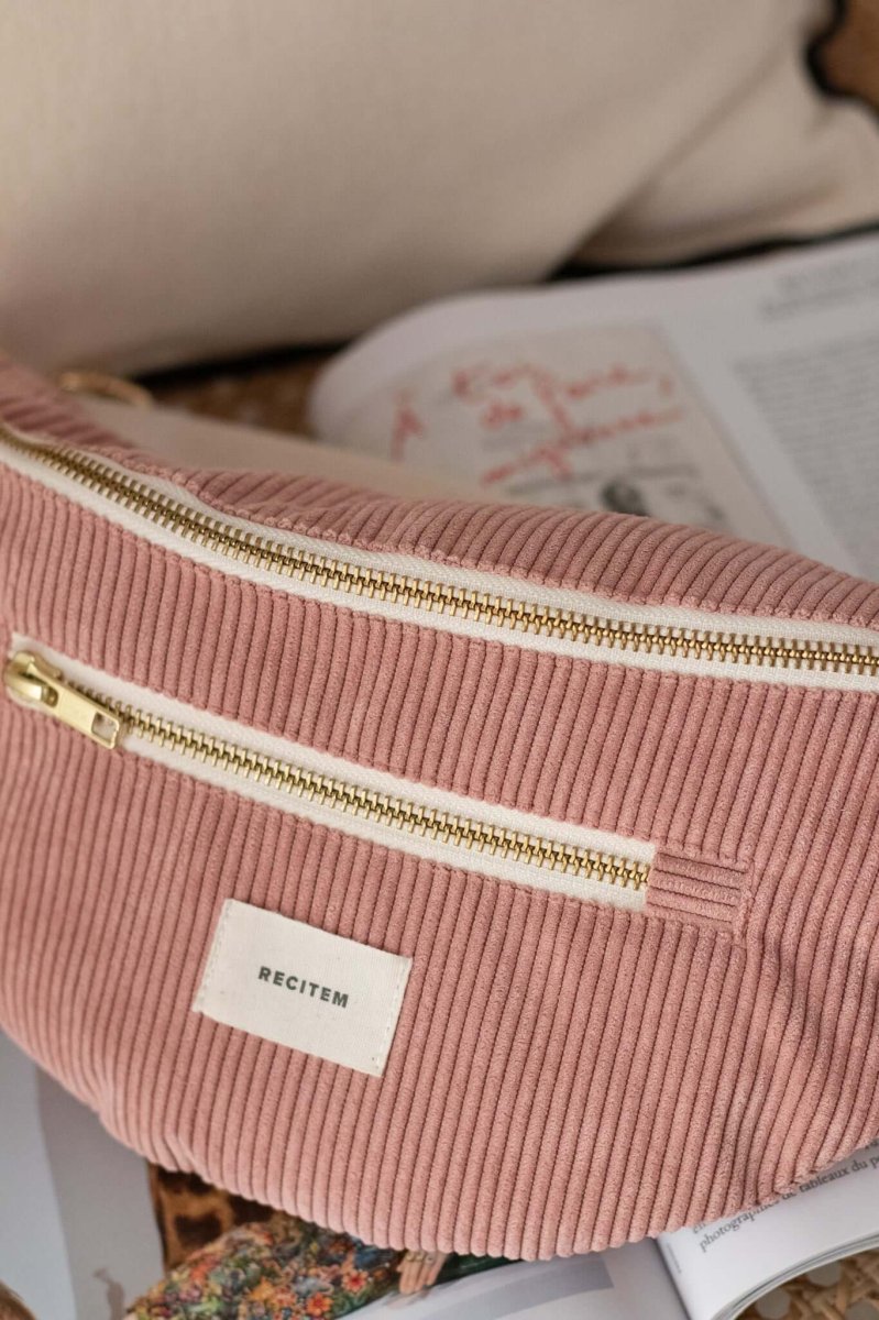 Sac banane velours côtelé vieux rose Nina :