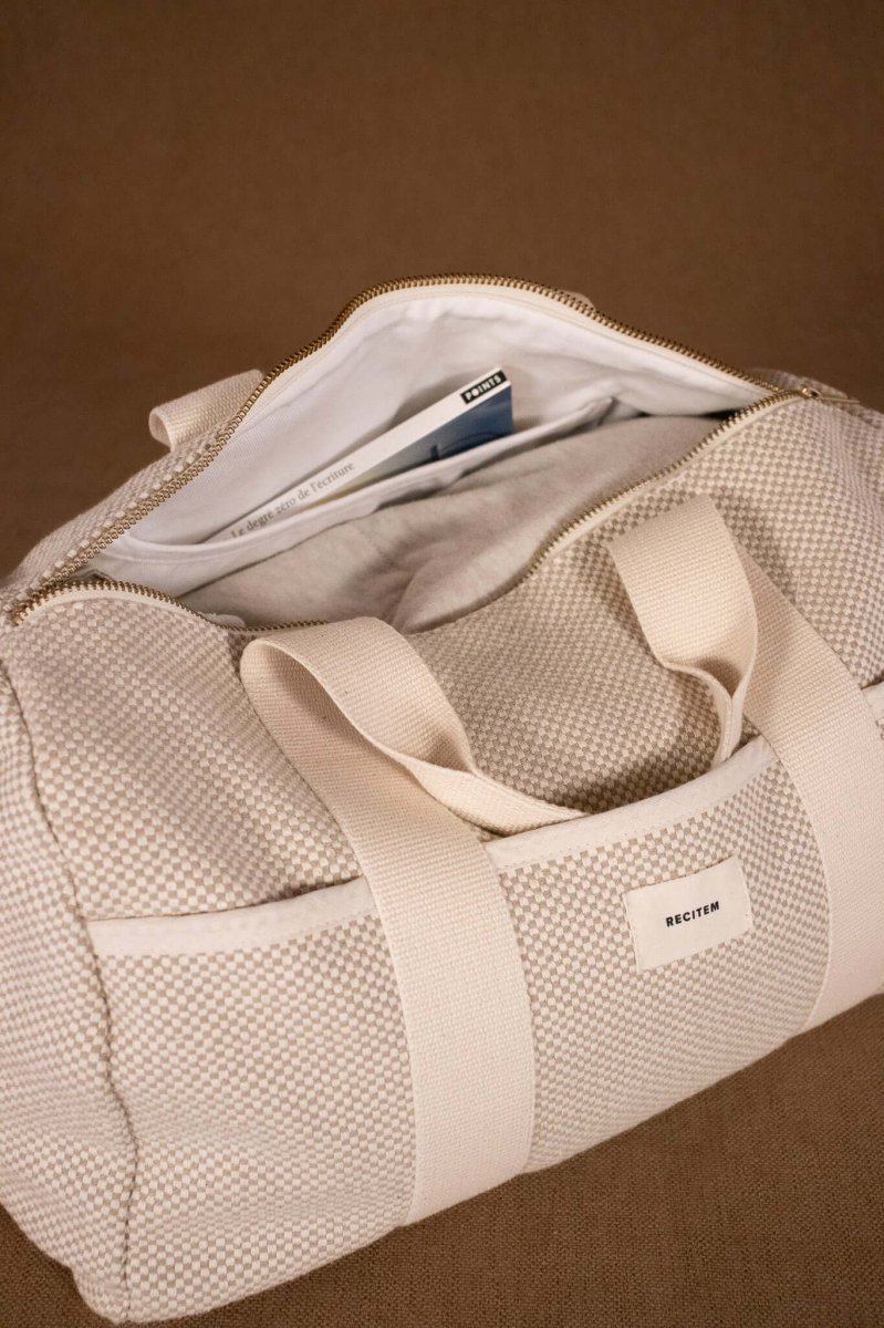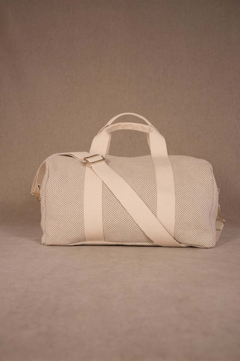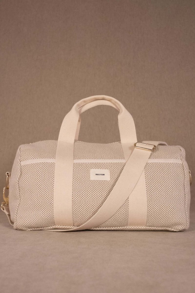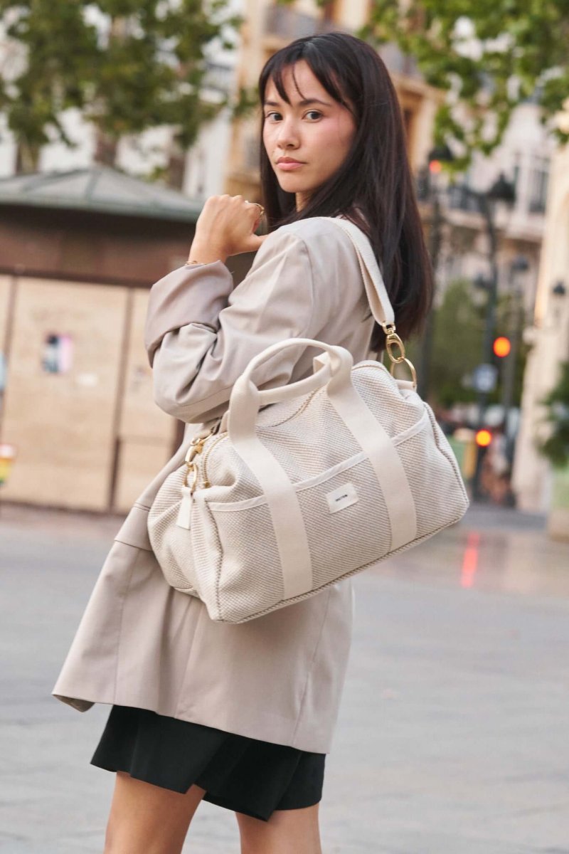 Sac de voyage 24h Elio en coton beige & écru. Le format cabine pour un week-end de 2 jours.3 poches extérieures plaquées et 1 poche intérieure plaquée pour sécuriser vos essentiels. La sangle amovible réglable (jusqu’à 105 cm) permet un porté épaule ou crossbody confortable. Matières européennes, confection Portugal. Entretien : chiffon humide + savon […]