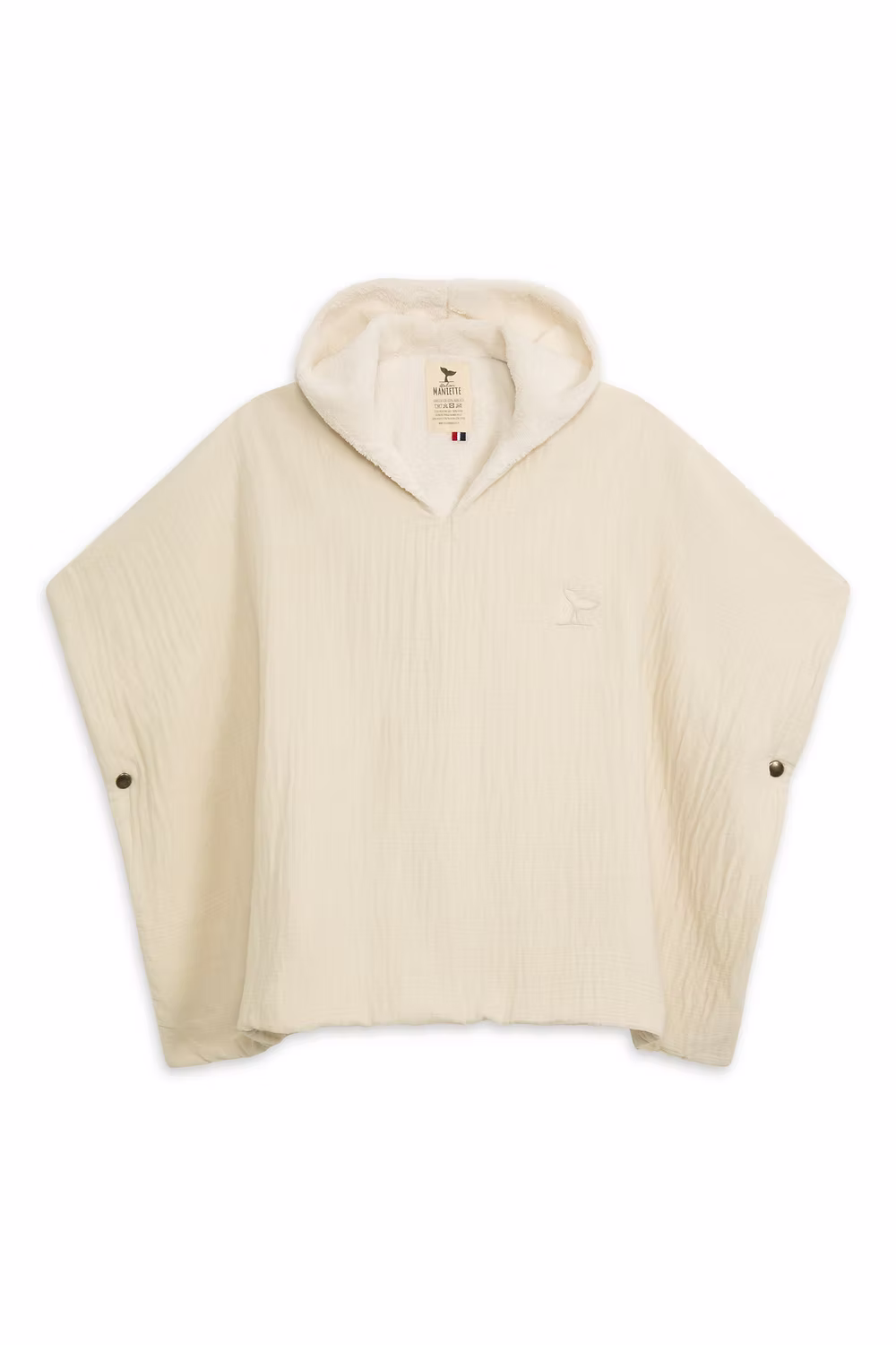 Très simple à enfiler, il est doté de pressions sur les côtés et d’une grande capuche idéale pour les cheveux mouillés.
