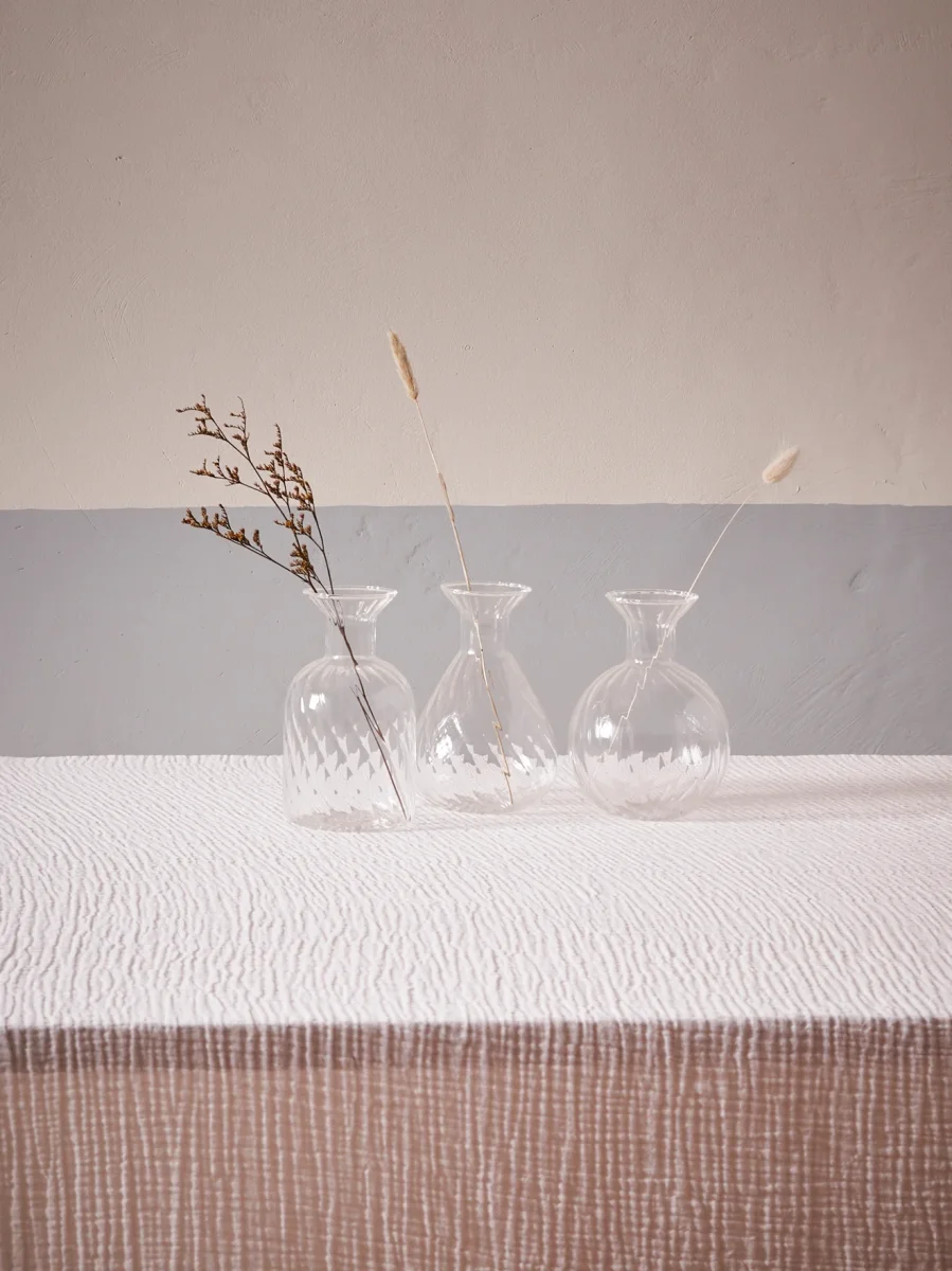 3 petits vases en verre ciselé pour une déco au charme d’antan mais à l’allure actuelle.